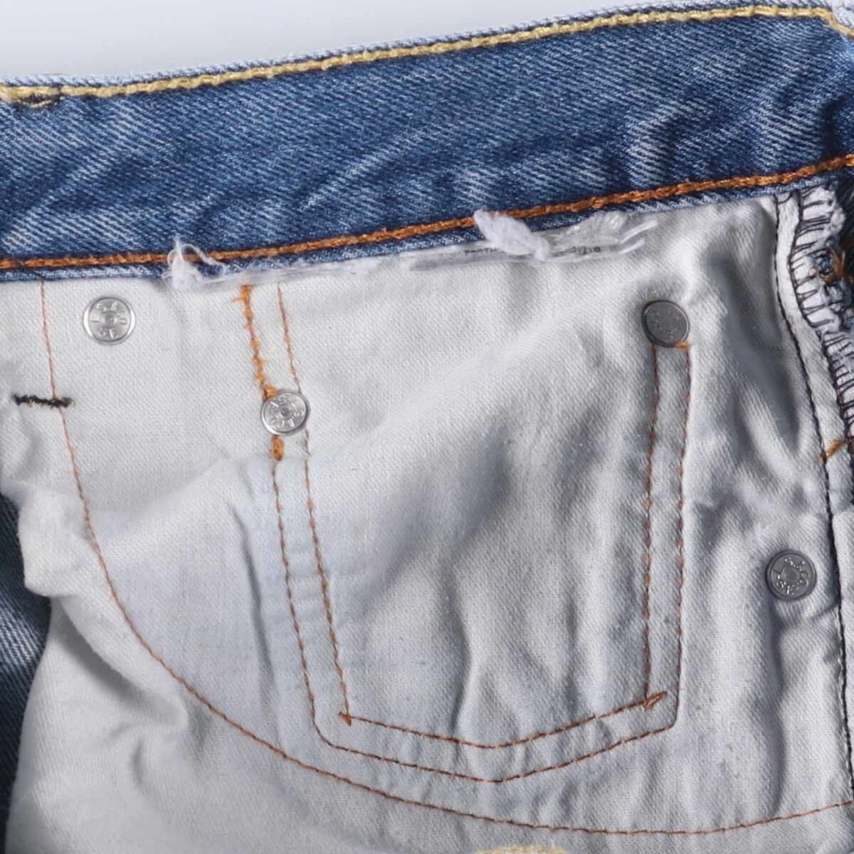 | 表記サイズ: W33L34 ウエスト: 84cm 股上: 30cm 股下: 83.5cm もも周り: 59cm 裾周り: 41cm ![]() | ![]() ランク:C USEDですので使用感などございますが、まだまだご愛用していただけます。 古着という事をご理解の上ご注文よろしくお願いします。 【状態追記】 ●前、両腿・両膝・両裾に汚れ ●後、両ポケット・両ふくらはぎ・両裾に汚れ ●後、両裾に擦れ ●前後、両裾(内側)に汚れ ●前、両ポケット口・右ポケット内に汚れ |