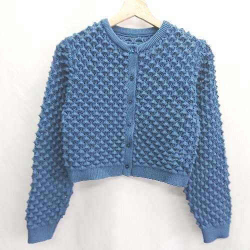◇ ⊂ MOUSSY マウジー メッシュニット 長袖 カーディガン サイズF ブルー レディース E