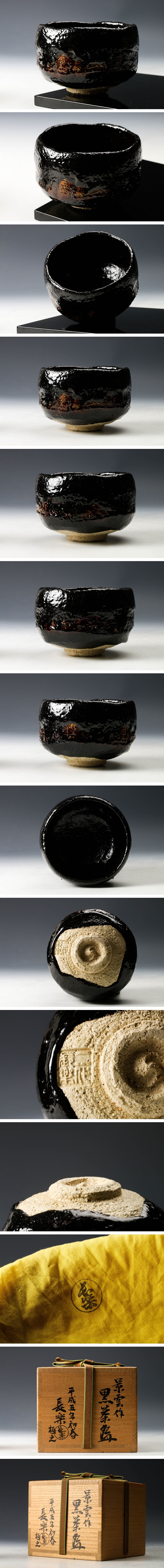 【佳香】二代 小川長楽(景雲) 黒茶碗 三代小川長楽極箱 共布 茶道具 本物保証