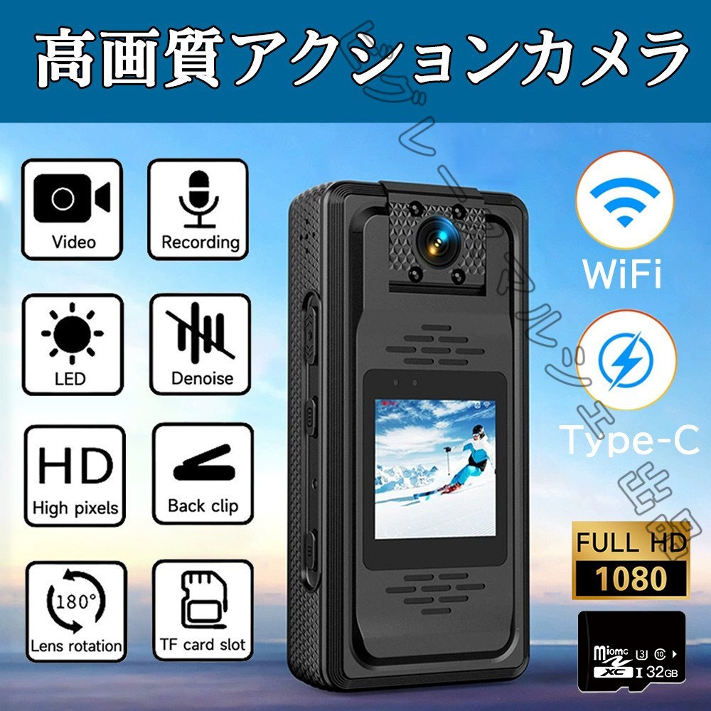 アクションカメラ 小型 2K 高画質 動画撮影 Vlog 小型 デジカメ バイク 小型カメラ 32GB TFカード付き 録画 広角 手ぶれ補正 hw1352