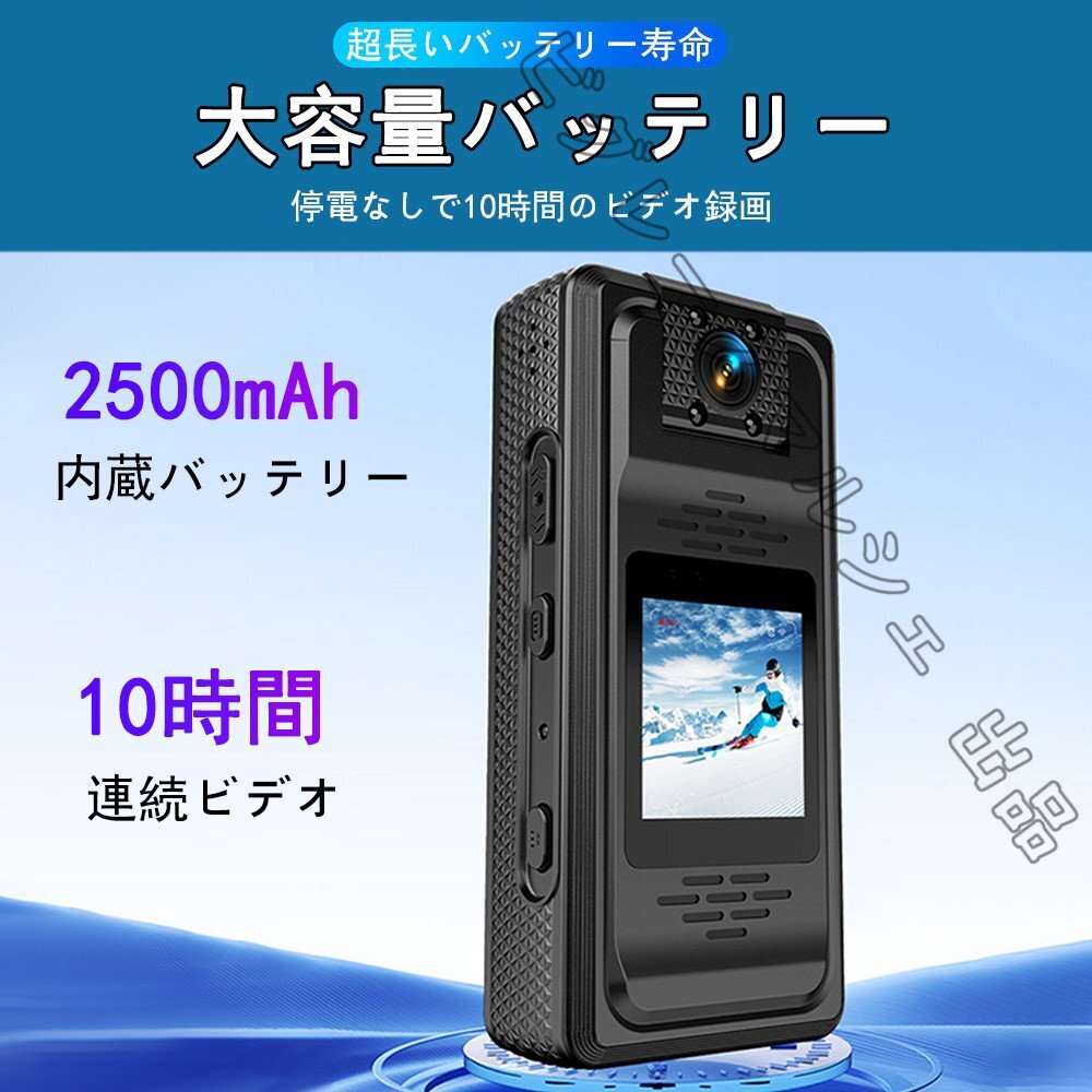 2500mAh大容量バッテリー:長時間の使用にも耐える2500mAhの大容量バッテリーを搭載。連続撮影や長時間の記録にも最適です。
