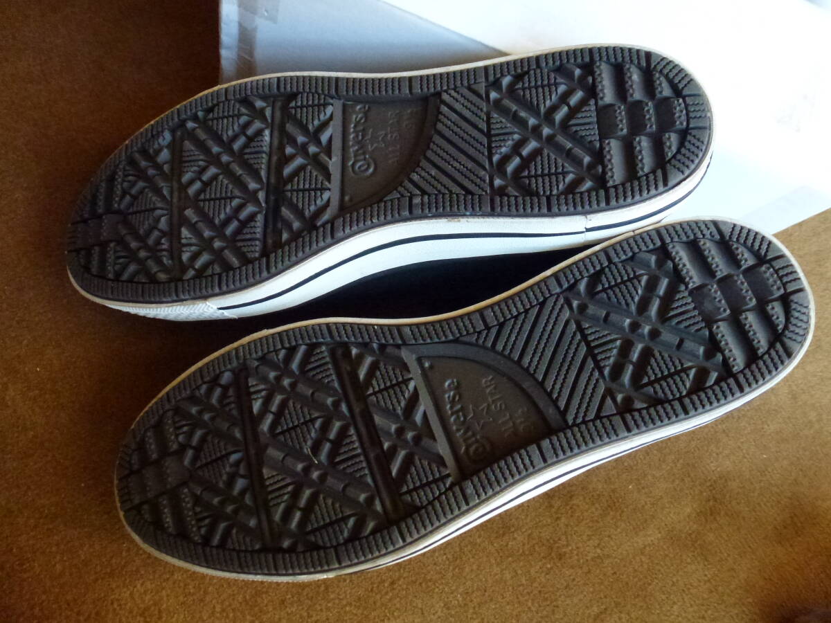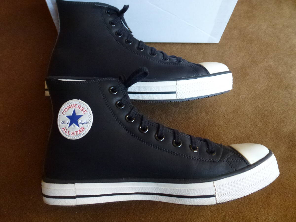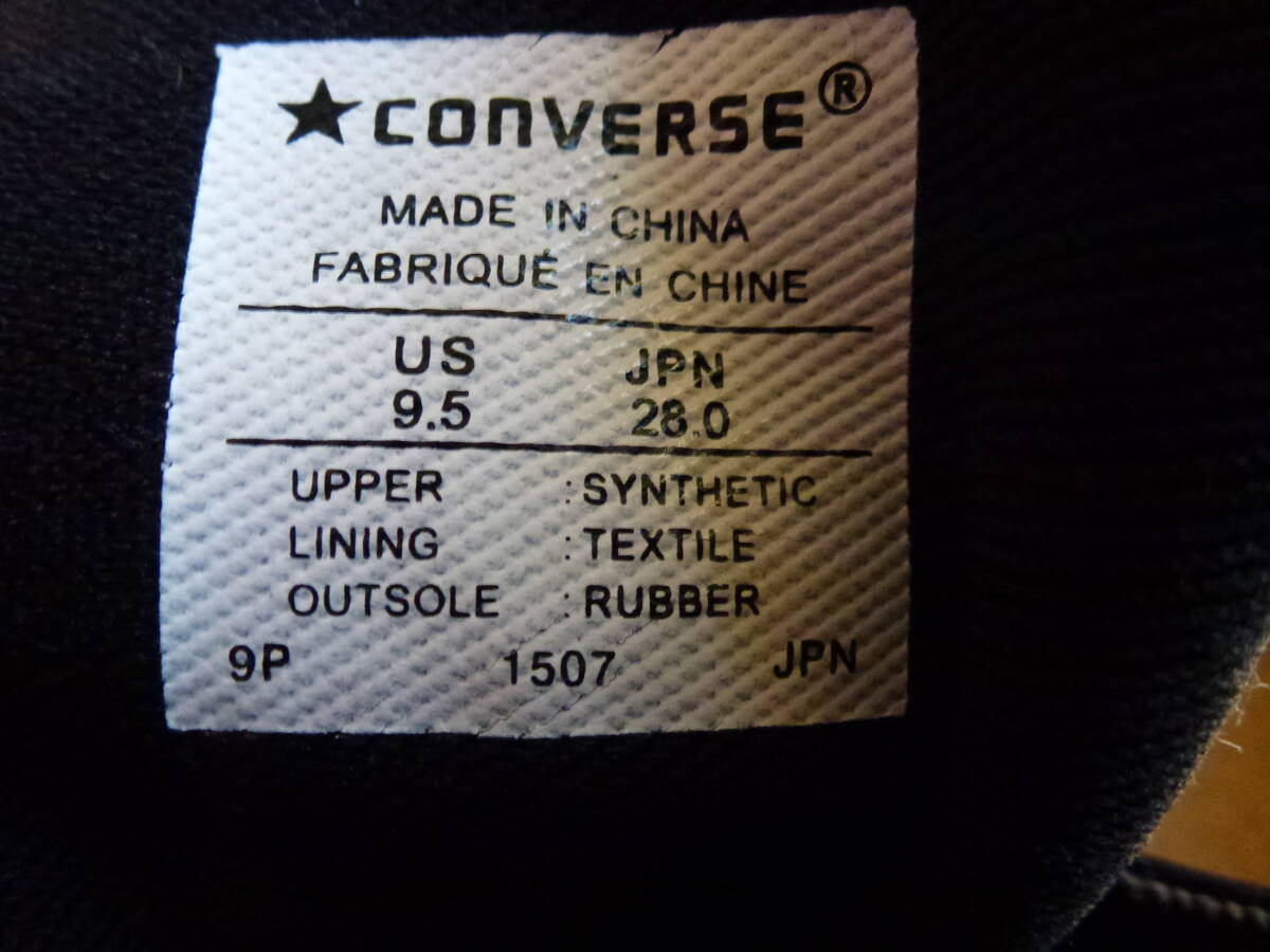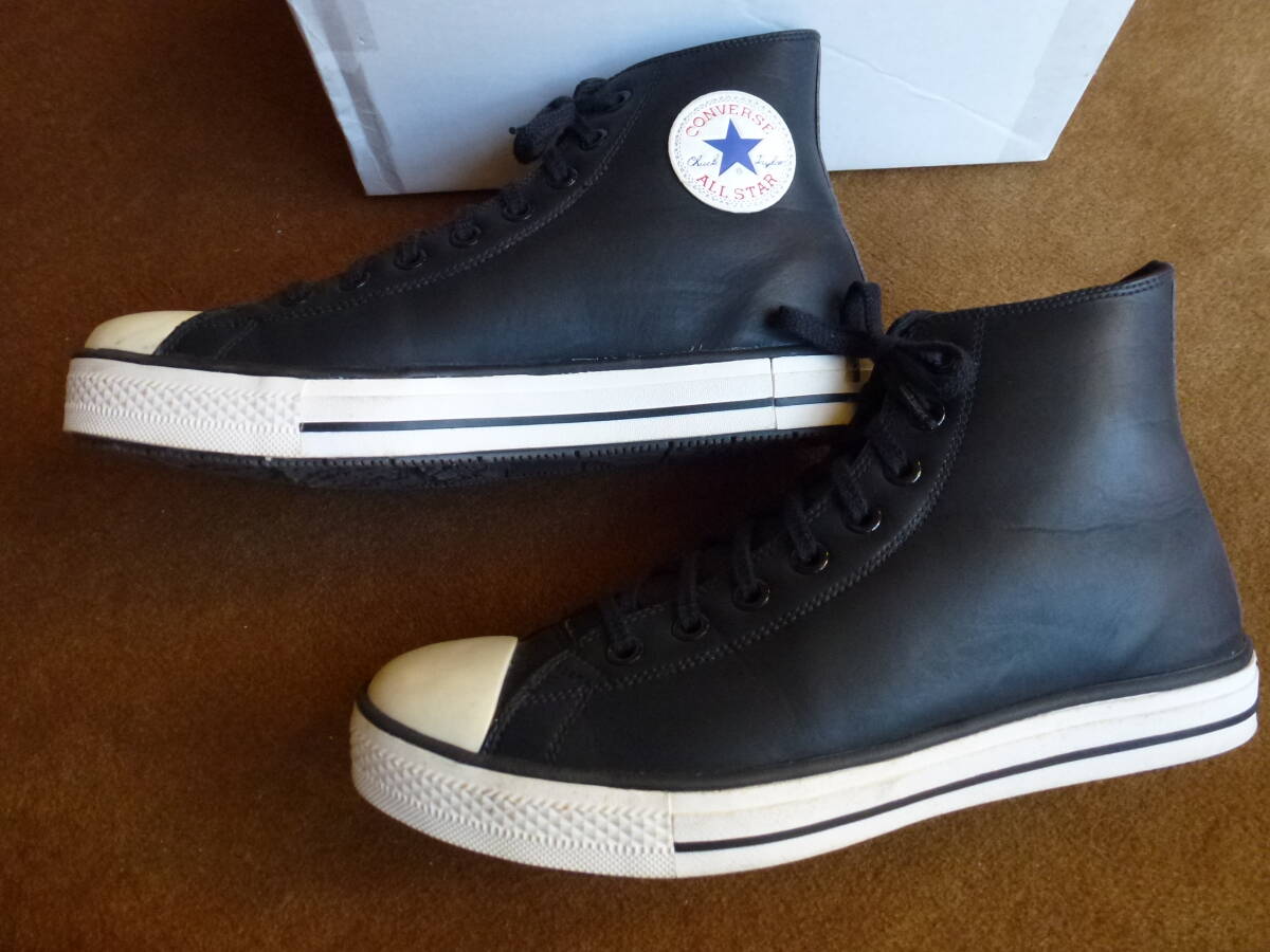 コンバースのオールスターです。色はブラック、アッパーの素材は合成皮革で、サイズはUSサイズの9.5、日本サイズで28.0cmです。新品で購入し、1度、30分ほど履いただけです。しかも車で移動しただけですから、ほとんど新品に近い美品です。合成皮革なので雨に濡れても安心ですし、とても軽くて履きやすいので疲れません。見た感じは天然皮革のようです。購入時に外箱を捨ててしまったので、何か別の箱に入れて発送致します。新品同様の美品ですから特に問題はないと思いますが、格安処分ですのでノークレーム、ノーリターンでお願い致します。評価の悪い方、オークション新規登録の方、細かい事を気になさる神経質な方などは入札を御遠慮下さい。宜しくお願い致します。