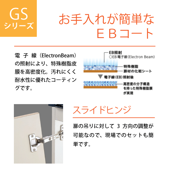 ・ シンプルなデザインと基本性能が充実した、木製キッチンのベストセラー商品です。