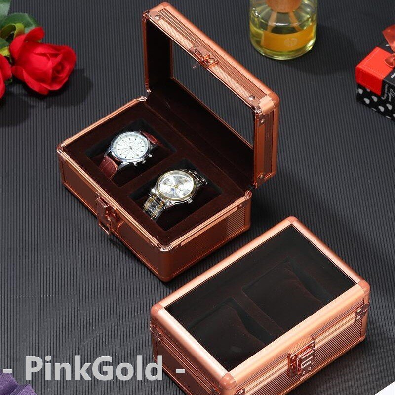 腕時計ケース ピンクゴールド アルミ 2本 収納 ケース プレゼント 収納ケース 高級 腕時計 インテリア コレクション 腕時計ボックス