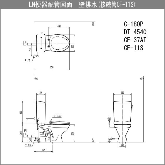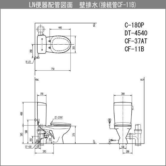 便器 LN便器(手洗なし・壁排水) 普通便座セット C-180P,DT-4540,CF-37AT リクシル イナックス LIXIL INAX★