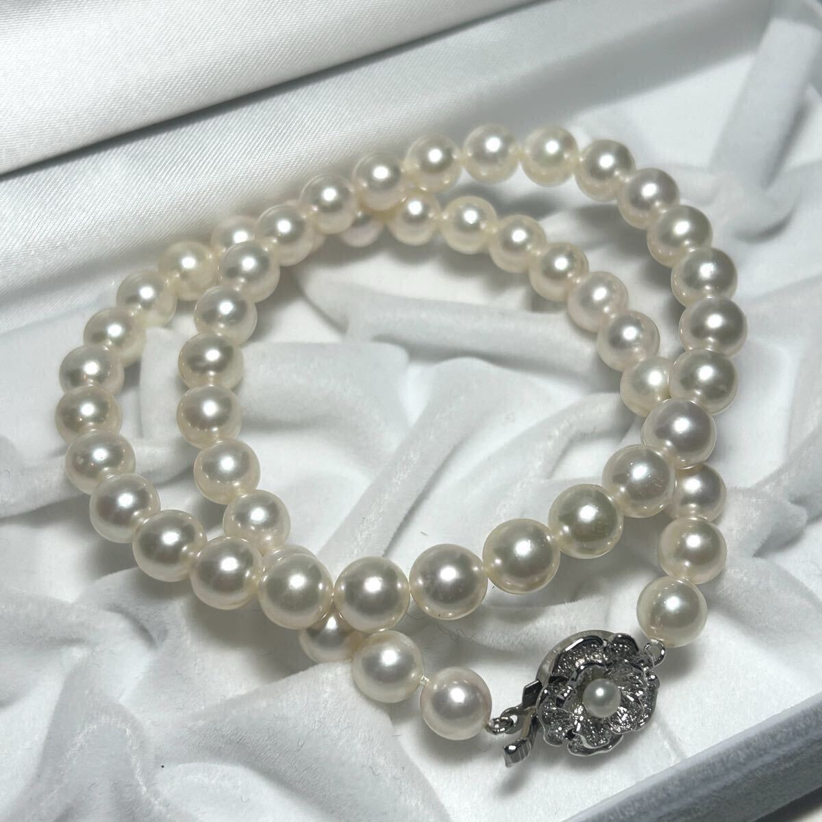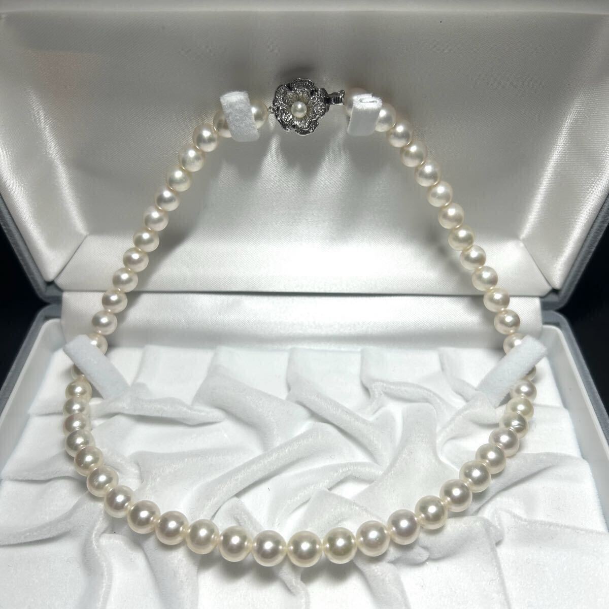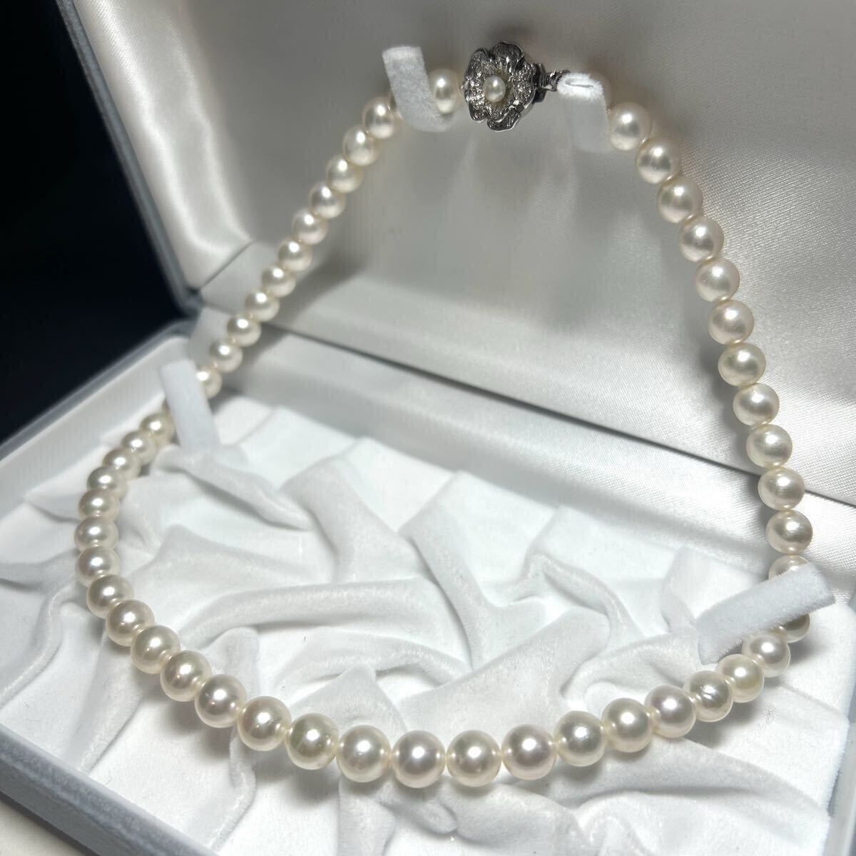 テリ抜群 アコヤ真珠 あこや パール ネックレス セミラウンド SV金具 ビーン金具 ジュエリー 美品 Pearl necklace 本真珠