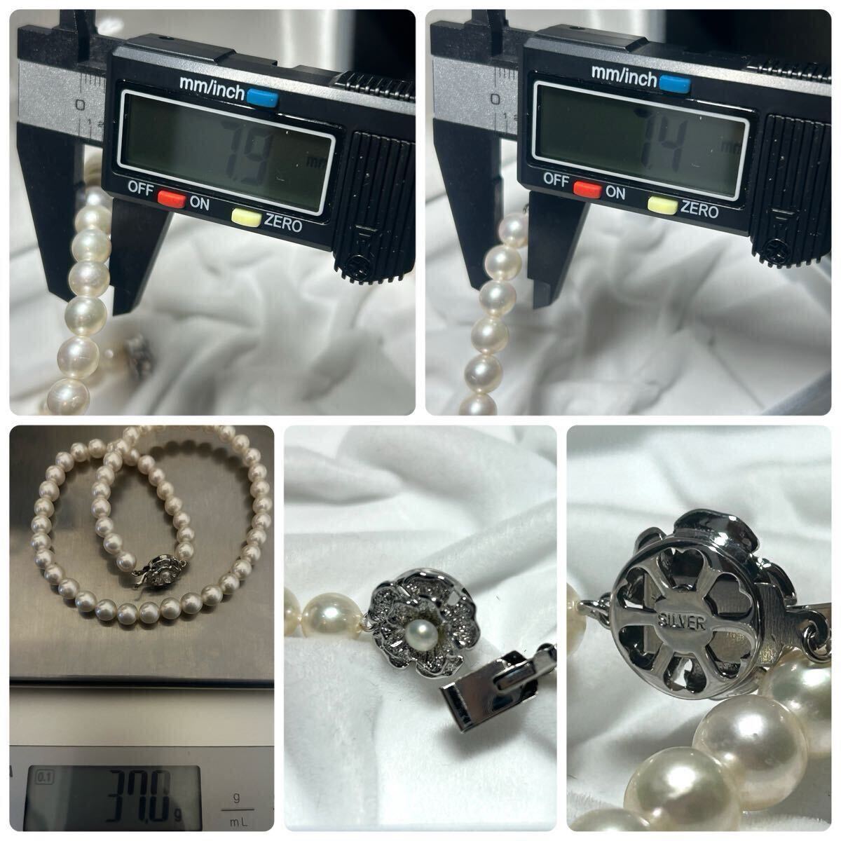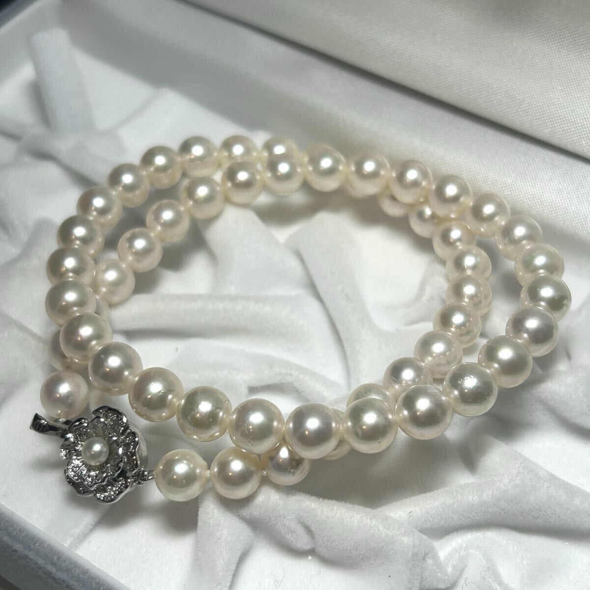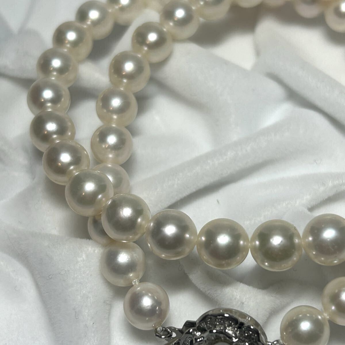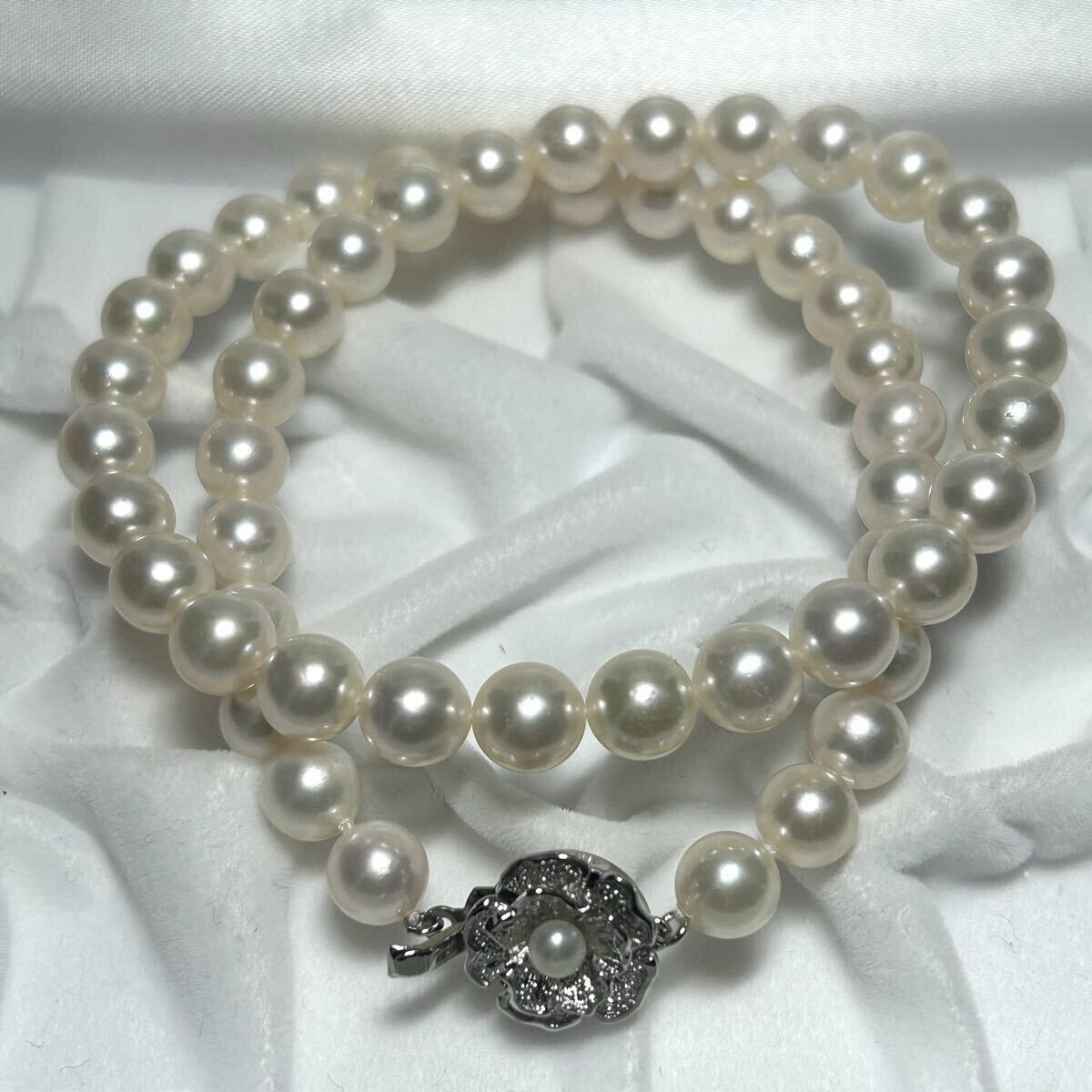 テリ抜群 アコヤ真珠 あこや パール ネックレス セミラウンド SV金具 ビーン金具 ジュエリー 美品 Pearl necklace 本真珠