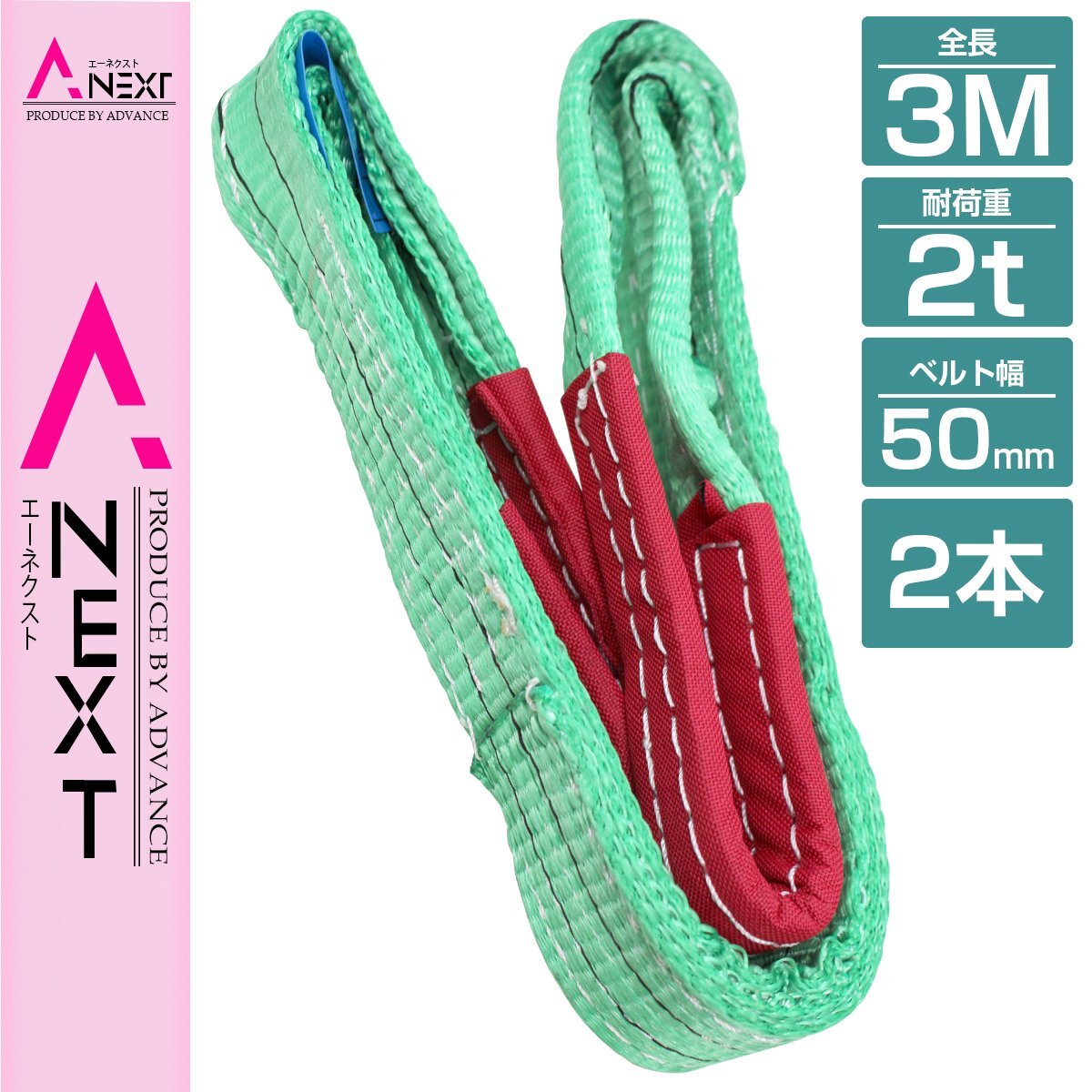 [2本 セット/耐荷2t/長さ 3m] スリング ベルト 吊上げ ナイロン クレーン ロープ 荷吊り 玉掛け 牽引 運搬 2000kg 2トン 幅50mm
