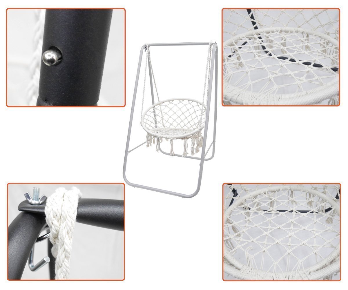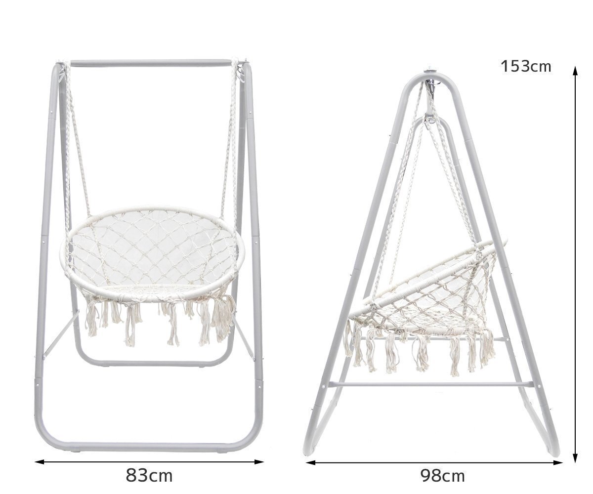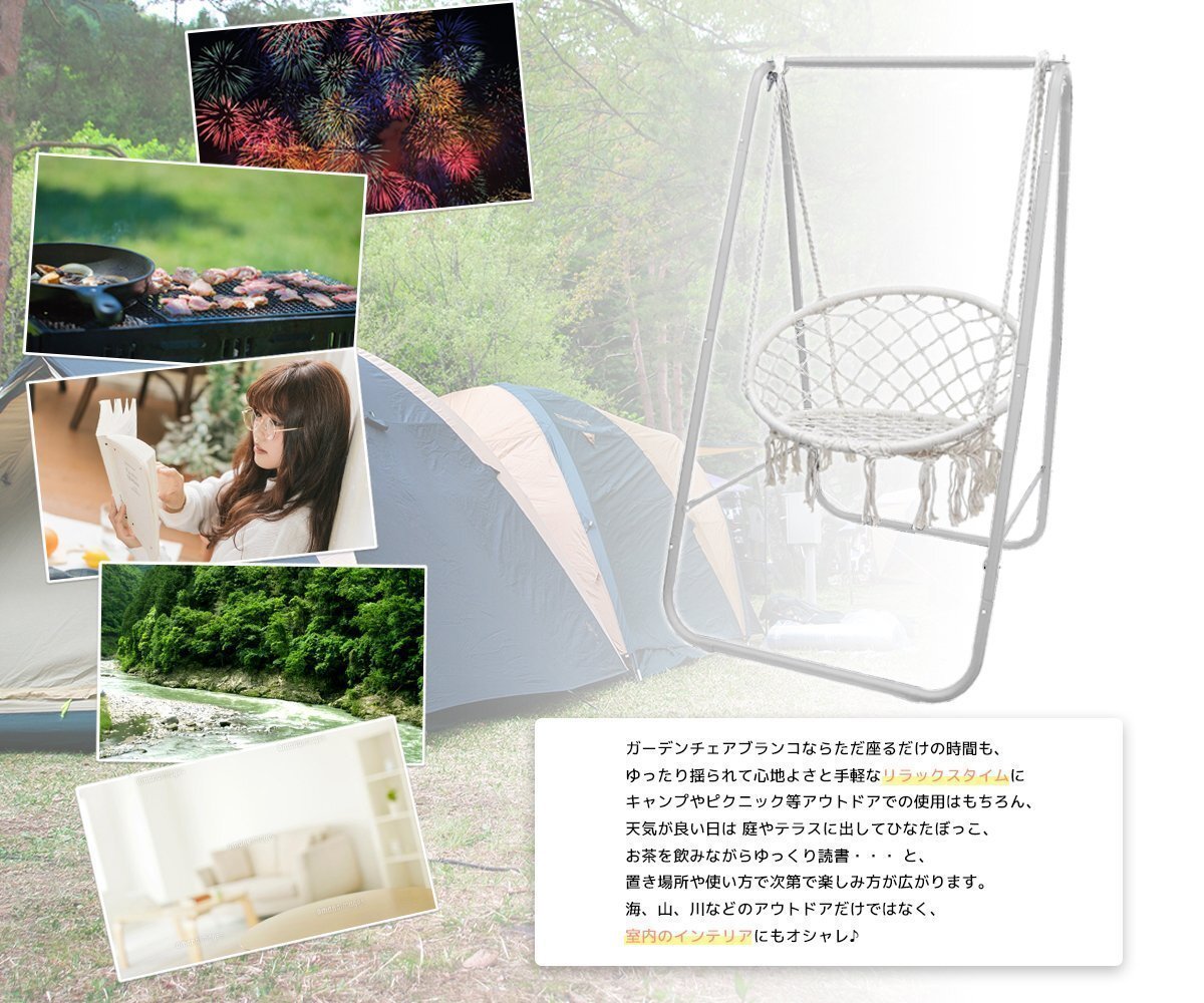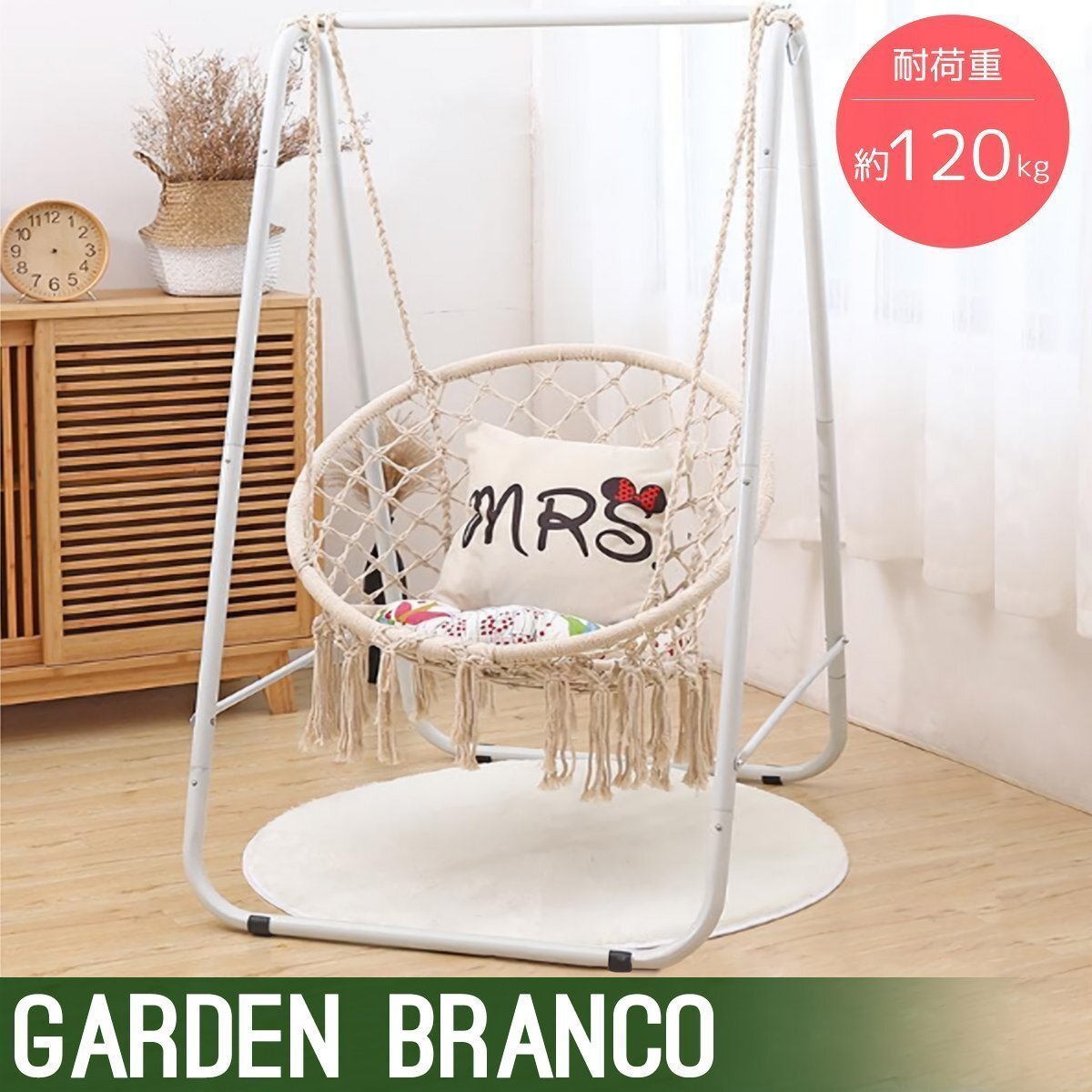 自立式 ハンモックチェア ガーデンブランコ ハンギングチェアスタンド ロープ アウトドア インテリア 室内 ベランダ おしゃれ HC-04WH 白