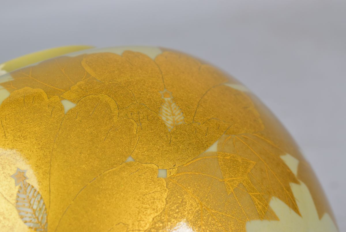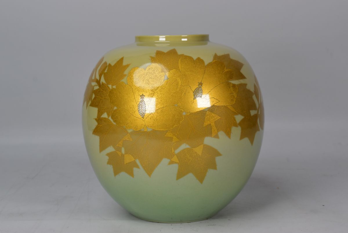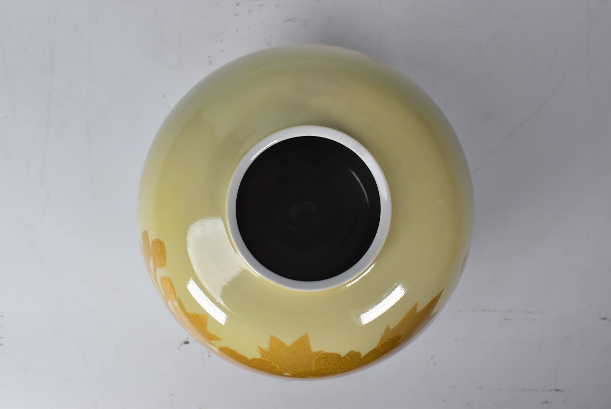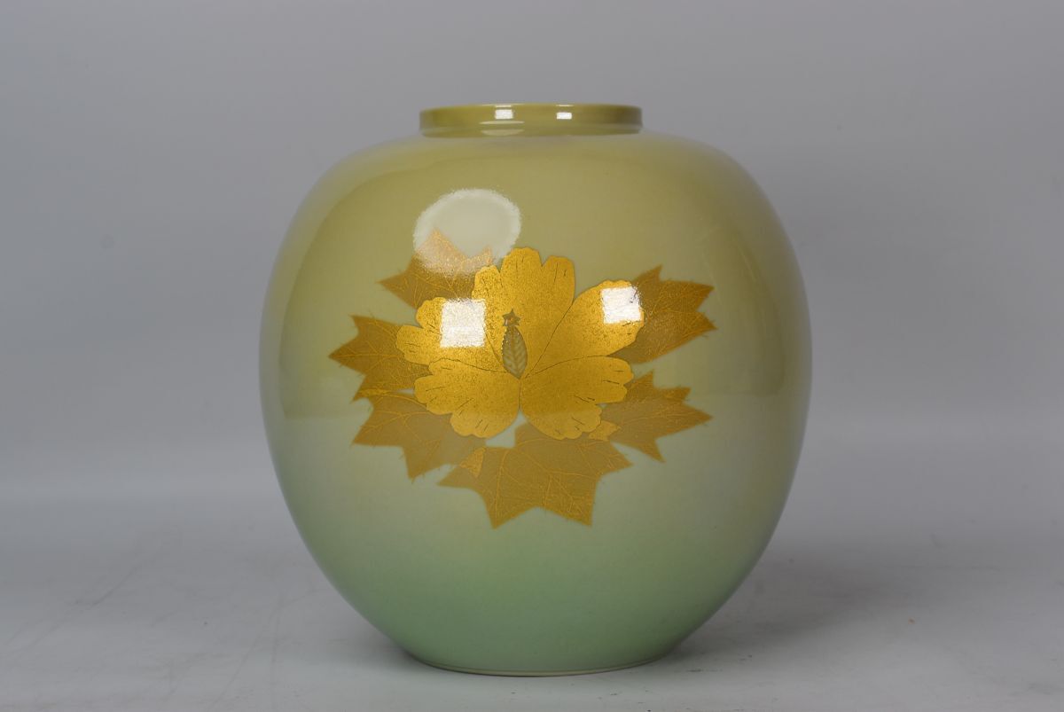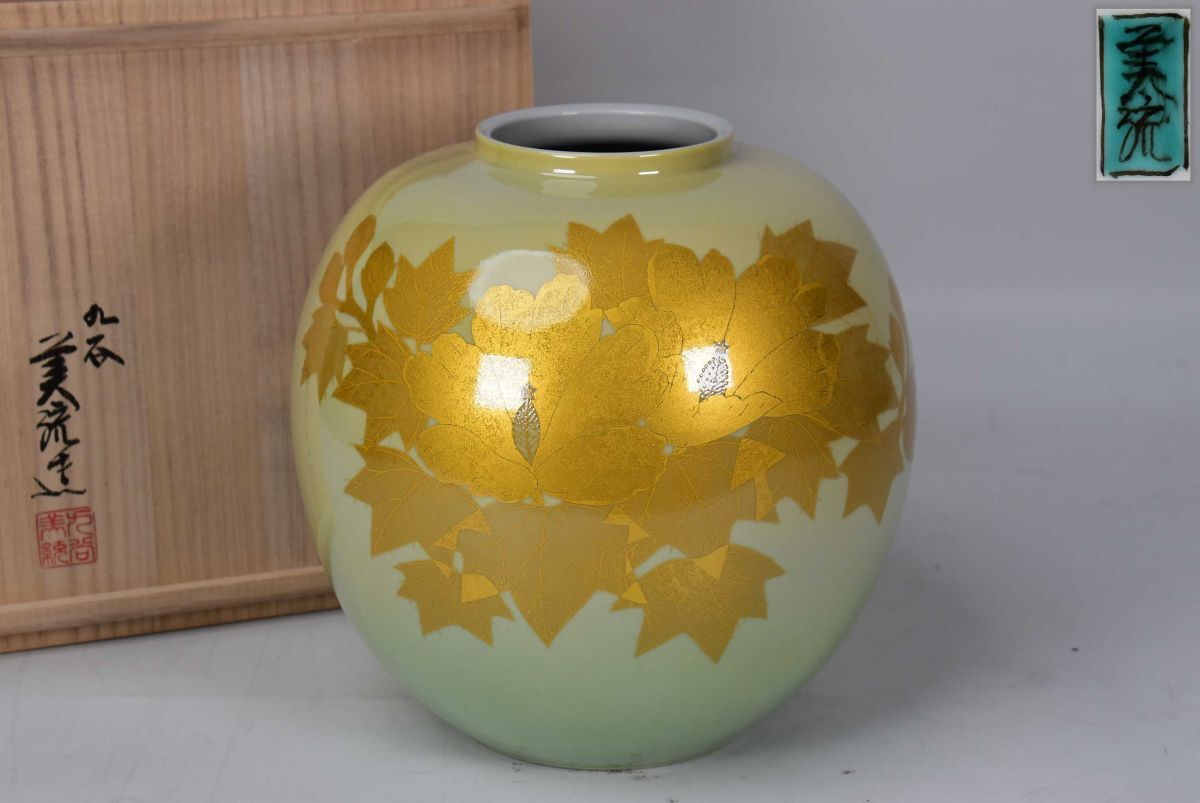 九谷焼 人間国宝 吉田美統 釉裏金彩芙蓉文 花瓶 共箱 骨董品 古美術品 花器 壺