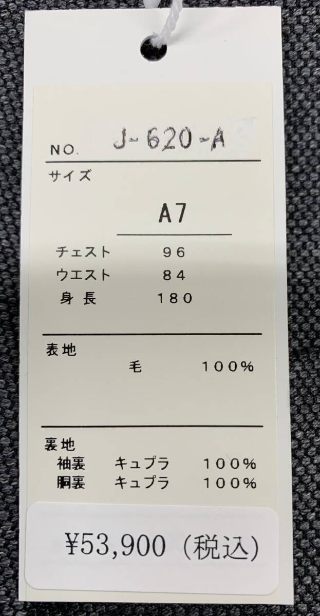 定価5.3万 特価セール 新品 未使用 REDA イタリア生地 メンズ テーラード ジャケット ウール 毛 A7 ダークグレー 無地 冬物 冬 スーツ 92