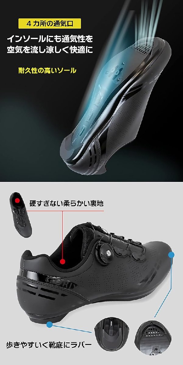 3タイプのビンディング用クリート対応の自転車サイクルシューズ 3穴タイプのロードバイクや2穴タイプのMTBクリートに対応します。 シマノSPD/SPD-SL対応、LOOK Keo対応に互換性あり。 [優れた通気性] 通気穴から熱を外に逃がします。熱が籠りにくく快適に。 [ダイヤル式調整] 微細な調整ができるダイヤル式は細かくフィット感を調整できます。 片手でも締付け、緩めるができる! 使い方もとても簡単です。 ビンディング用クリートはロード向け、MTB使用可能 (3穴タイプ)ロードバイク向けクリート。 (2穴タイプ)MTB向けクリートに対応。 [ソール] 4カ所の通気口、インソールにも通気性を。 空気を流し涼しく快適に。 耐久性の高いソールです。 またソールにラバーが2カ所あり歩きやすい。 ※ノークレーム、ノーリターン | |