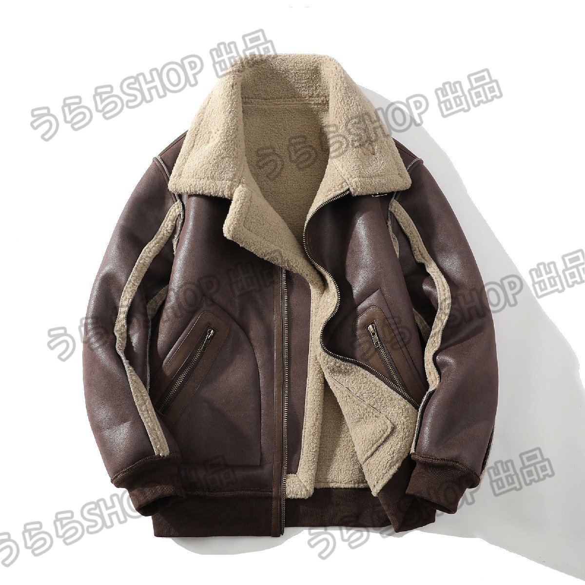 新品 レザージャケット 肉厚 防寒防風 滑らか 裏起毛 シンプル カッコイイ 無地 ジャケット ライダースバイク用 秋冬 SIZE:L xfz11.2