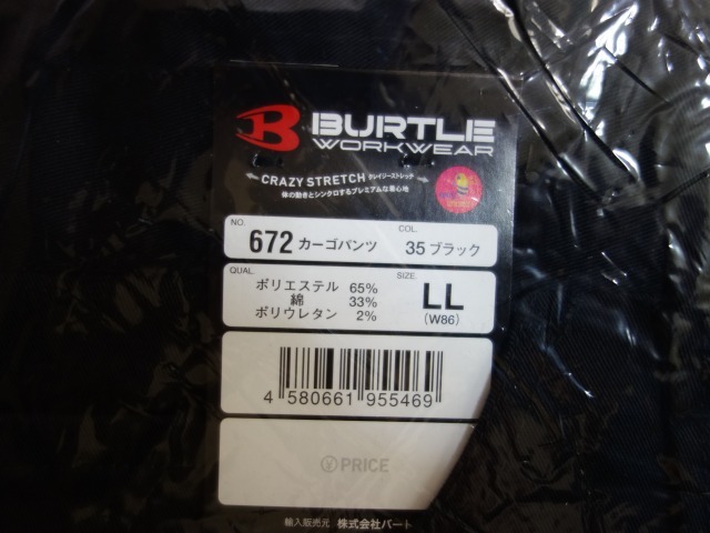 バートル 672★LL ブラック★ストレッチツイル カーゴパンツ★BURTLE