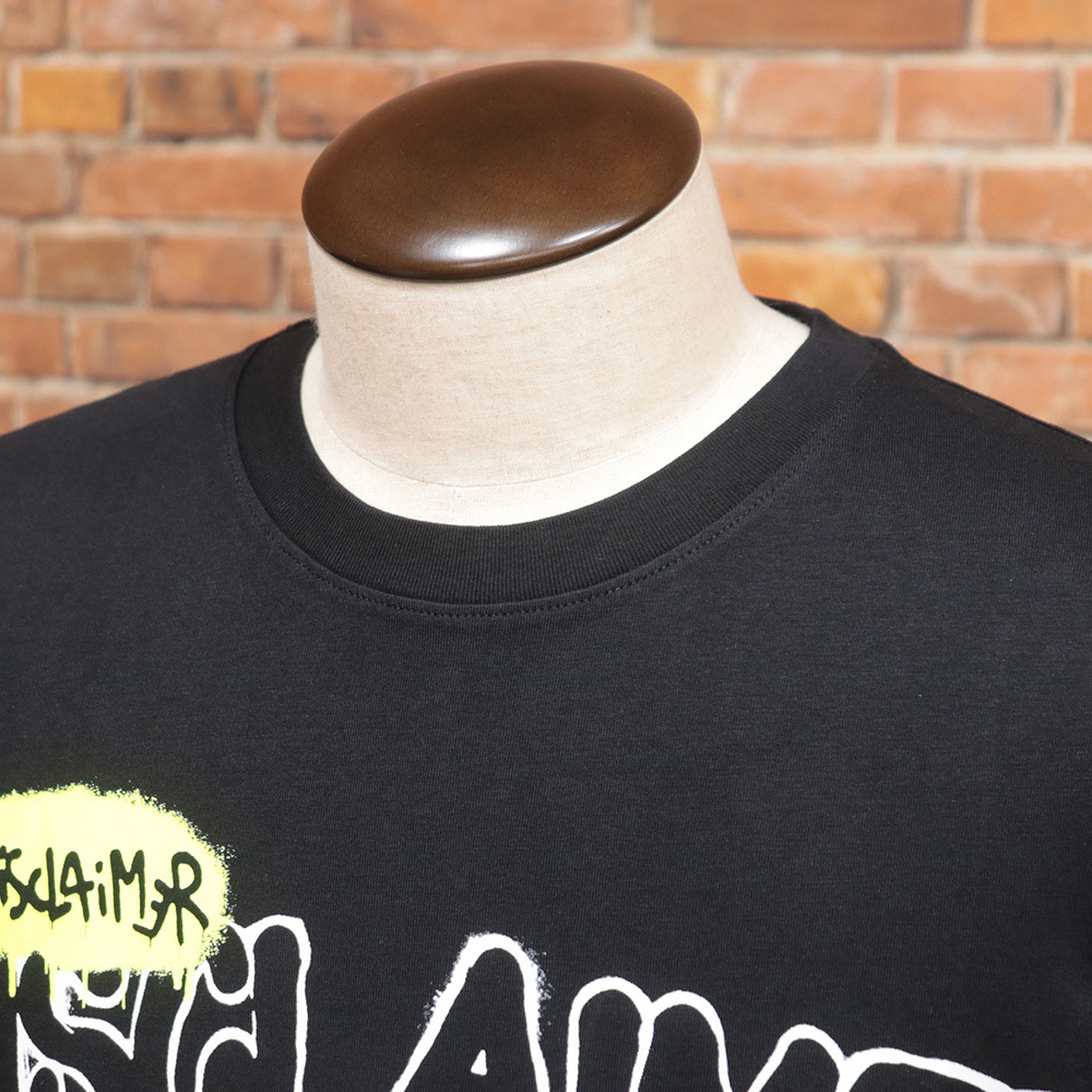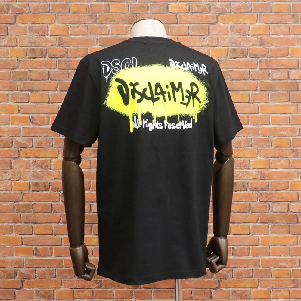 1円/DISCLAIMER/Mサイズ/プリントTシャツ ジャージー快適 バックプリント ストリート 半袖 新品/黒/ブラック/pb105/