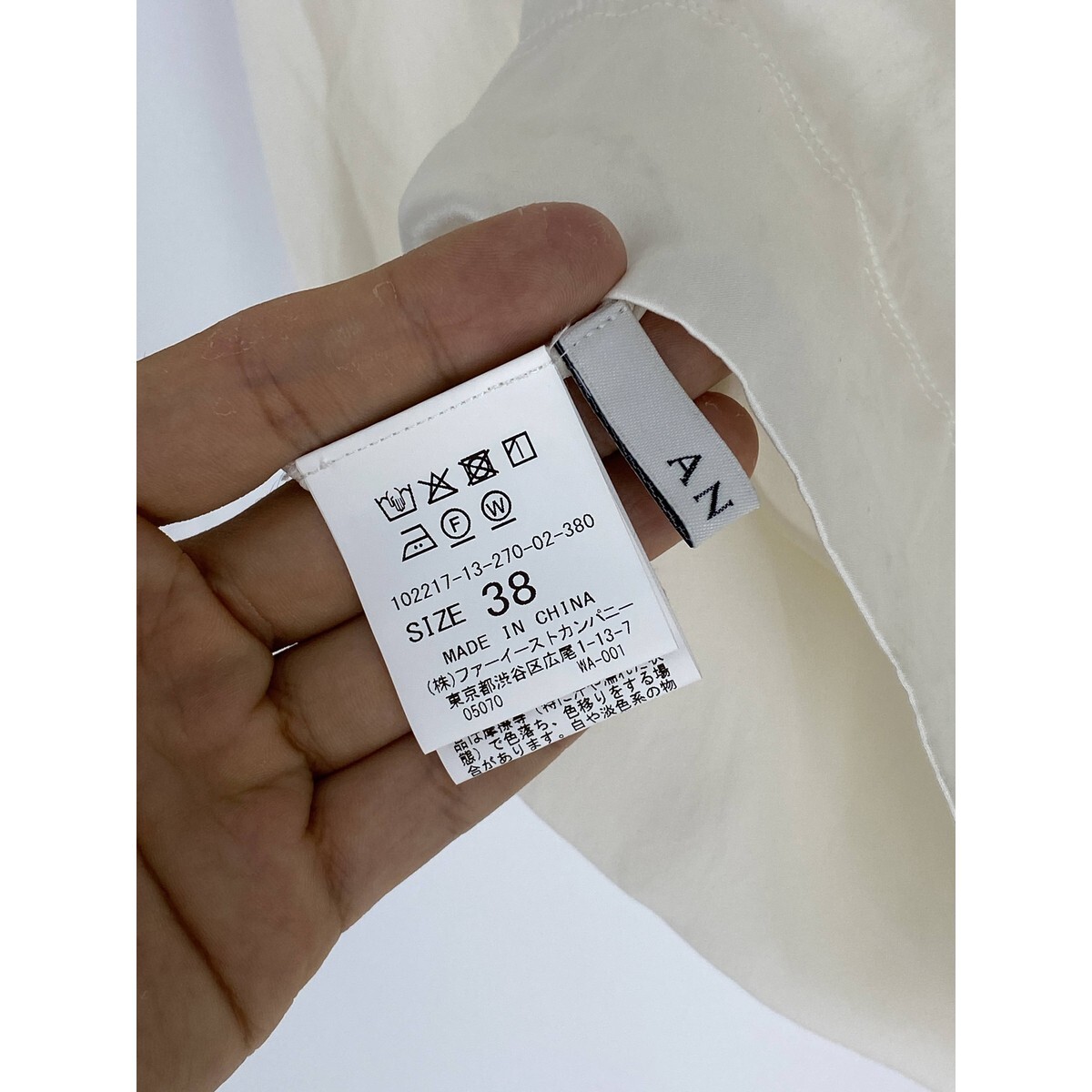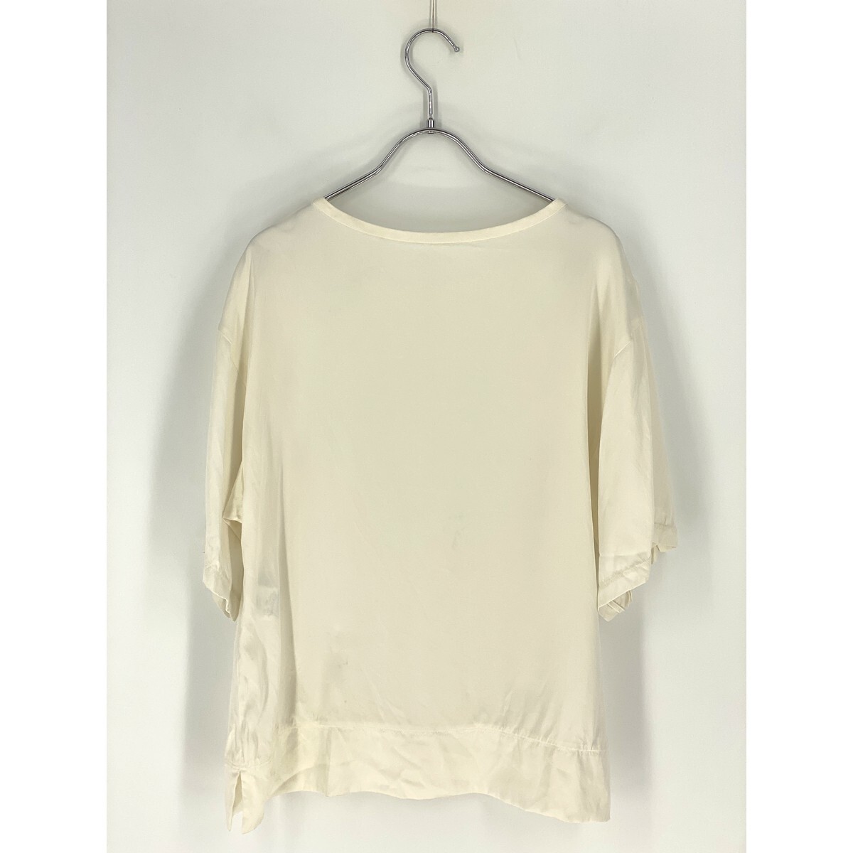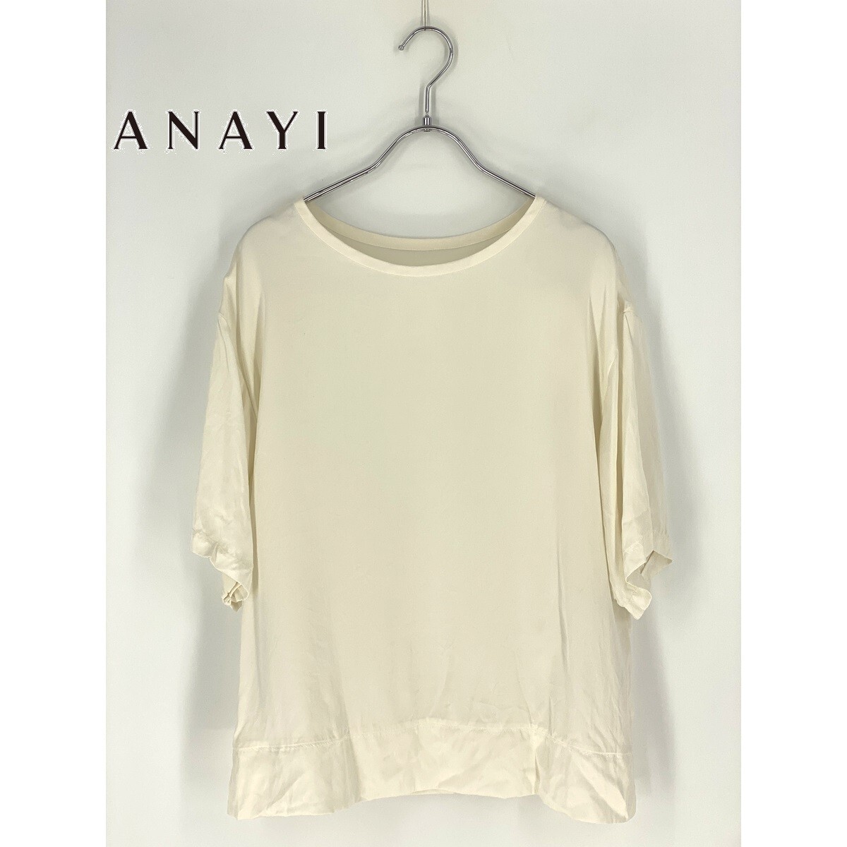 B0935/ 22SS ANAYI アナイ シルク100% サテン 光沢 無地 クルーネック 半袖 Tシャツ カットソー ブラウス 38 M 白 クリーム色 レディース