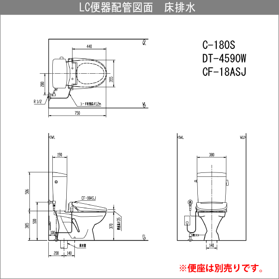 便器 LC便器(手洗なし) 寒冷地流動方式 便座なしセット C-180S,DT-4590W リクシル イナックス LIXIL INAX ★