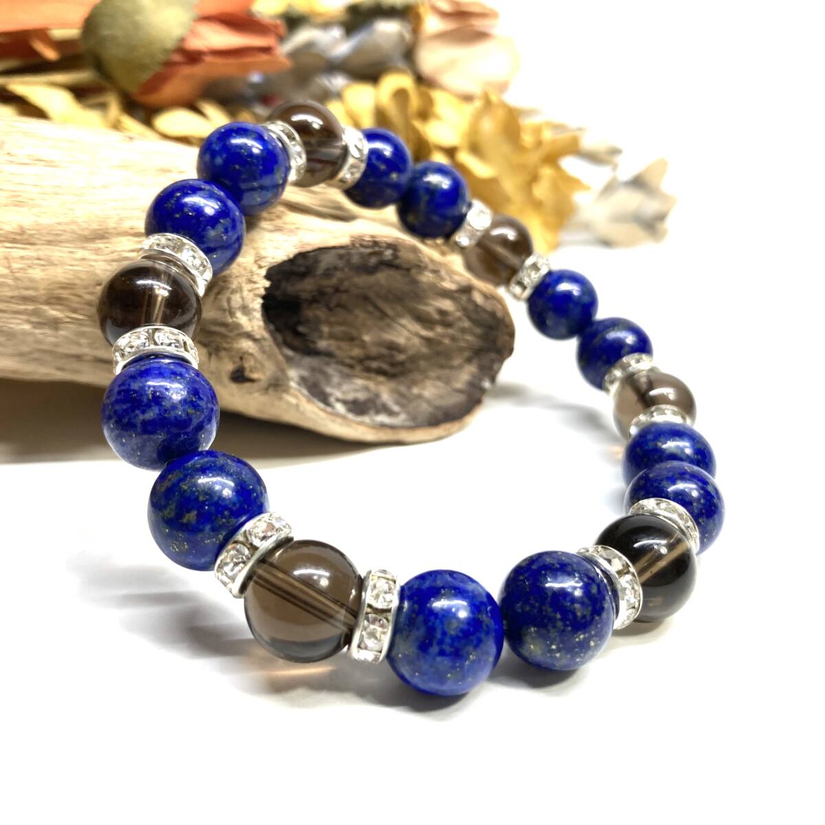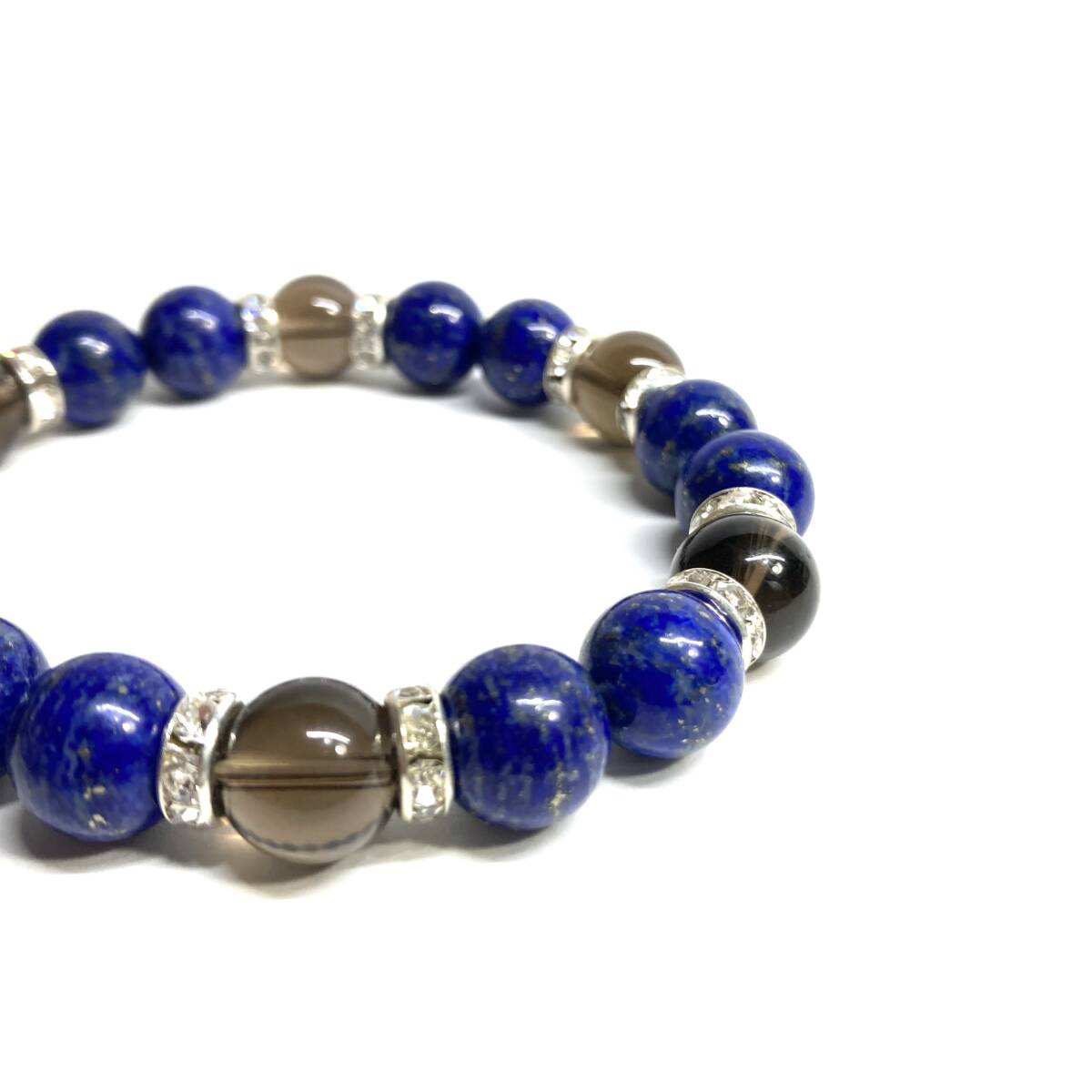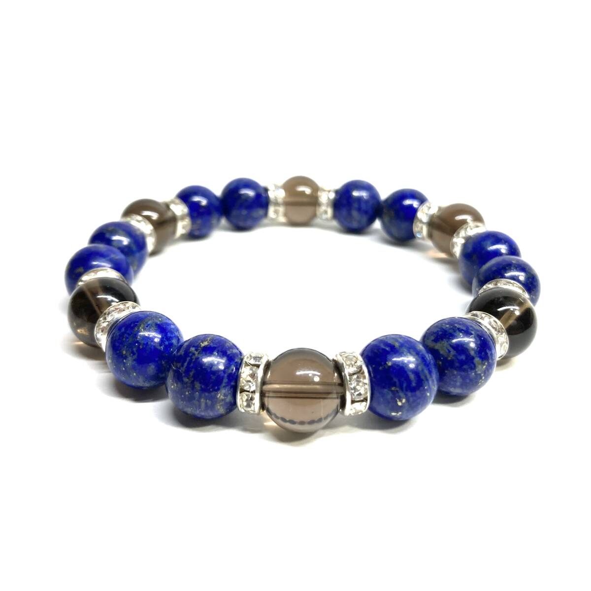 ラピスラズリ&スモーキークォーツ パワーストーン ブレスレット 天然石ブレス (シルバー) 10mm メンズ・レディース 癒し ☆