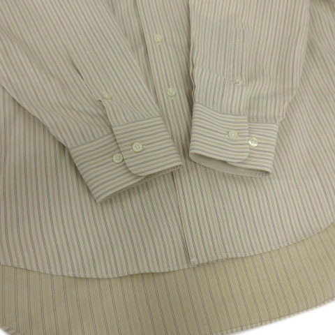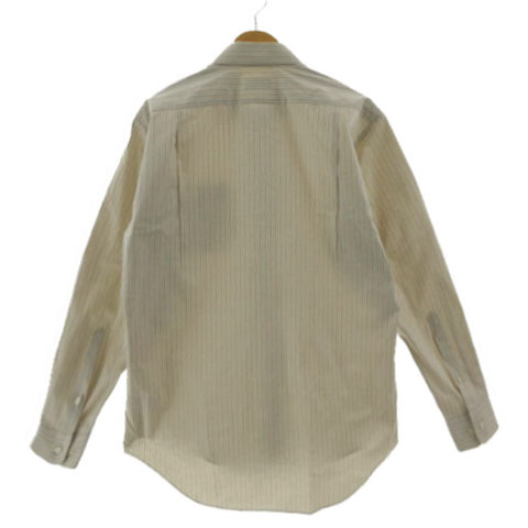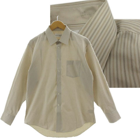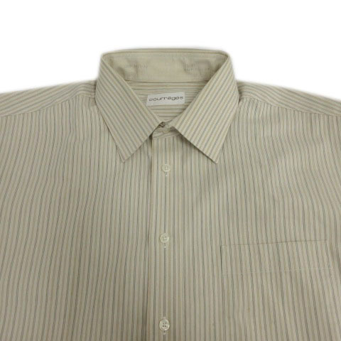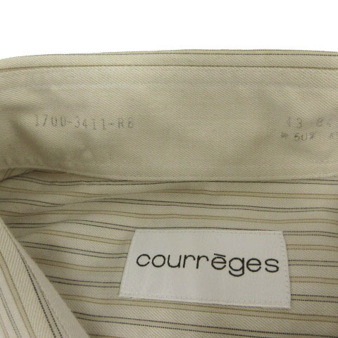 クレージュ courreges ストライプシャツ ワイシャツ 1700-3411-R8 胸ポケ 長袖 コットン混 ベージュ ブラウン 茶 ネイビー 紺 43-84