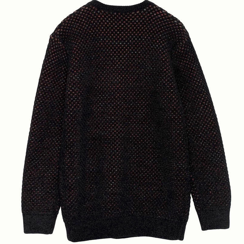 ■網のような編柄とカスリ糸のメランジ見えが独特な印象の仕上がりとなっています