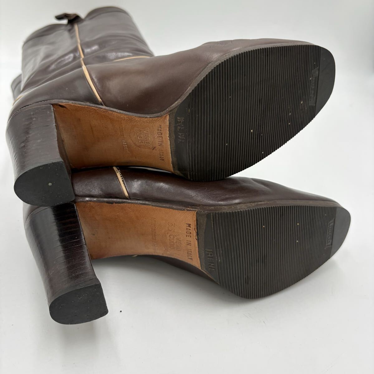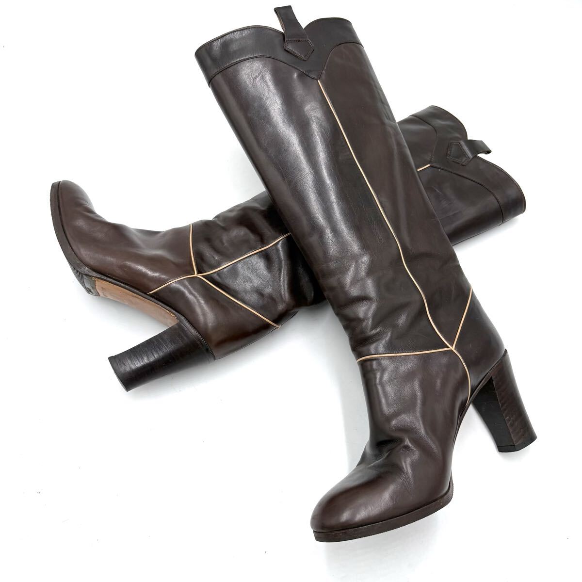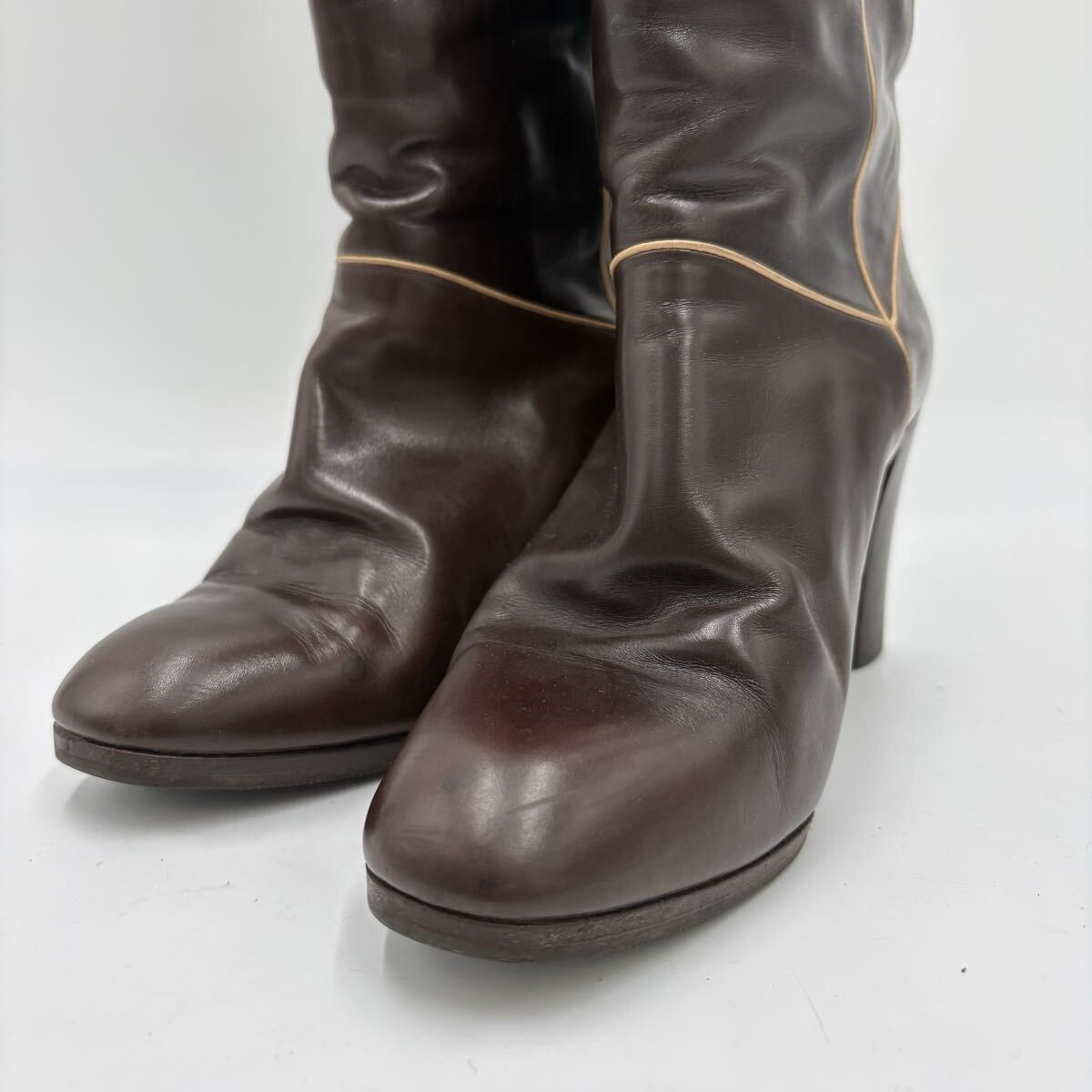 E ■ イタリア製 '高級感溢れる' CELINE セリーヌ 本革 LEATHER ヒール ロングブーツ EU35.5 22.5cm程 レディース 婦人靴 シューズ 茶系
