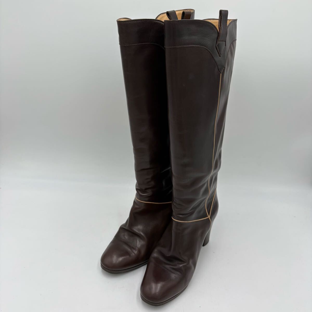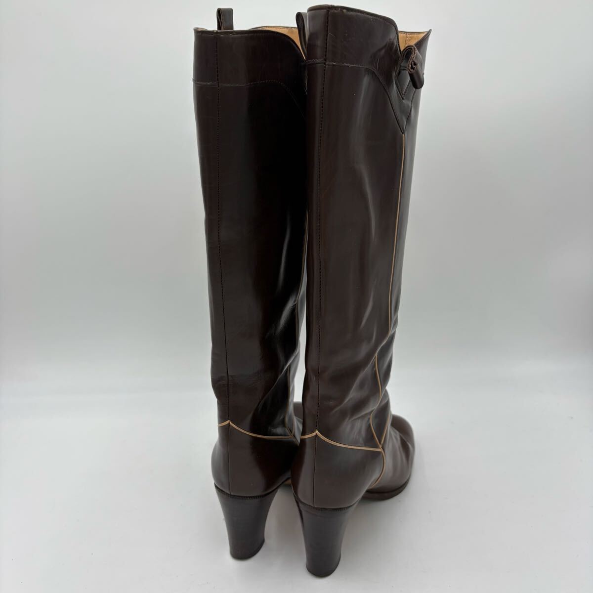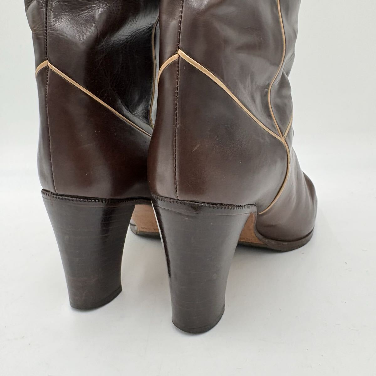 E ■ イタリア製 '高級感溢れる' CELINE セリーヌ 本革 LEATHER ヒール ロングブーツ EU35.5 22.5cm程 レディース 婦人靴 シューズ 茶系