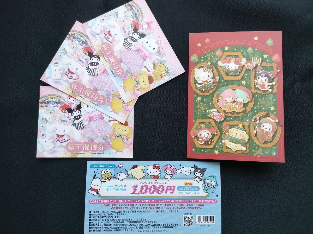 サンリオピューロランドまたはハーモニーランドで利用できる株主優待券3枚