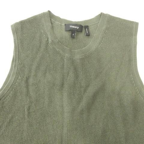 セオリー Theory ノースリーブ カットソー クルーネック 無地 薄手 Sサイズ 緑 グリーン ■YHS9 レディース