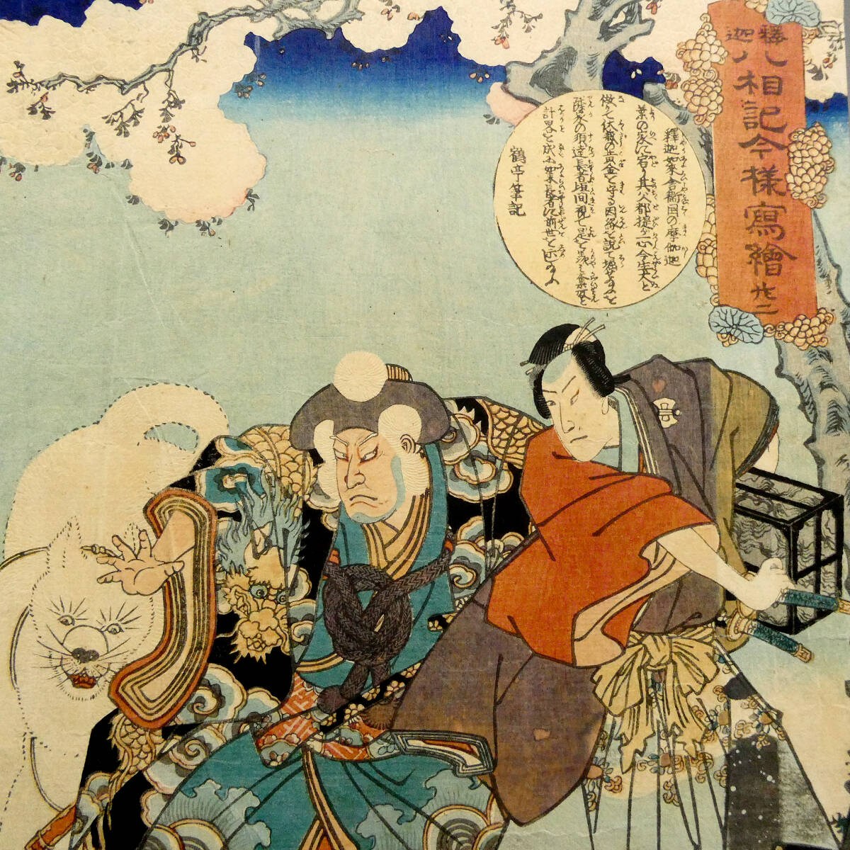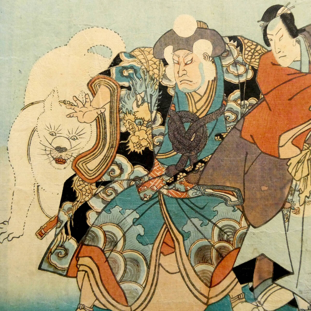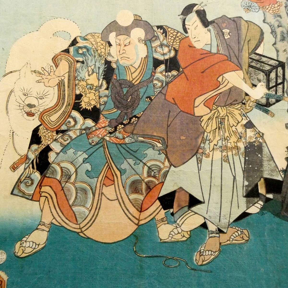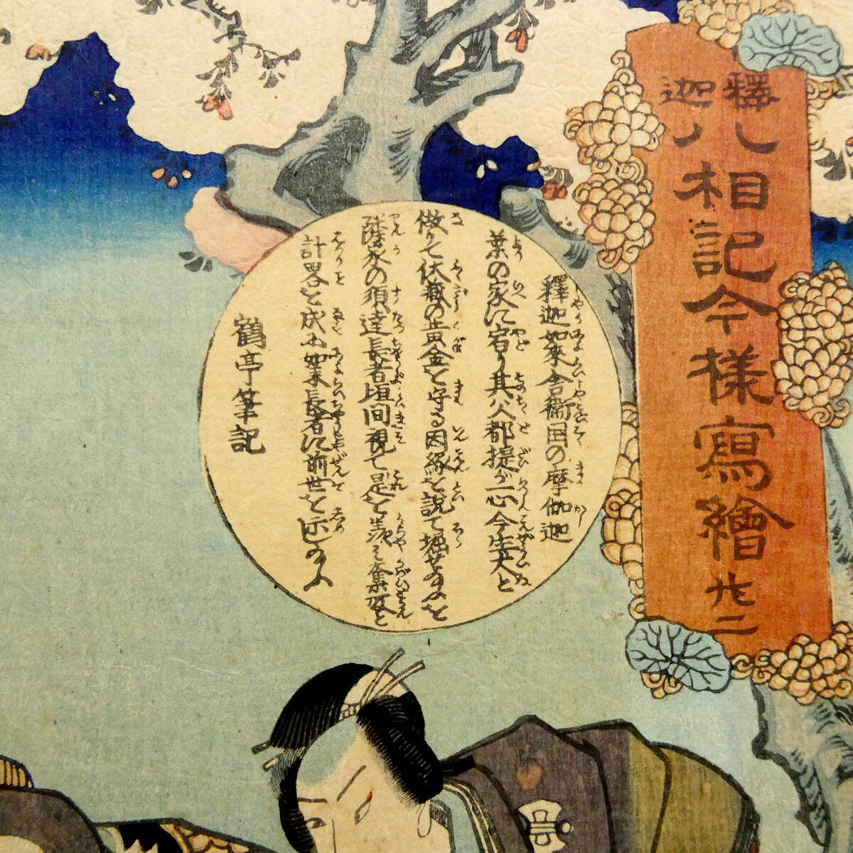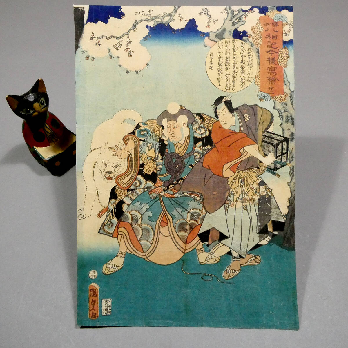 ■ 国貞二代 江戸時代 木版浮世絵 「釈迦八相記今様写絵」 釈迦如来舎衛国の摩伽迦 犬となりて伏蔵の黄金を守る ■