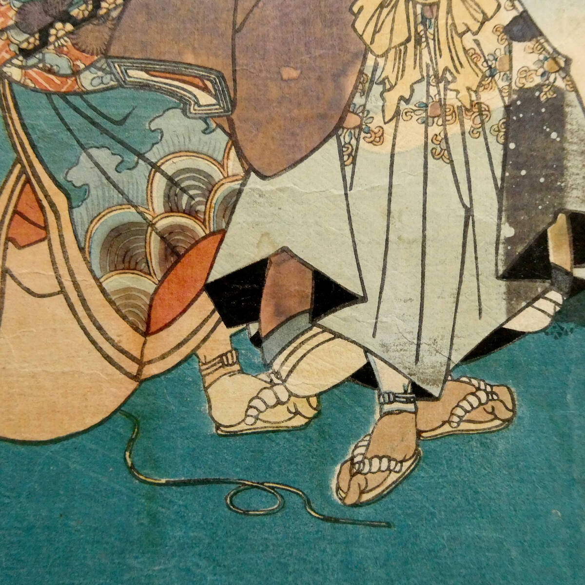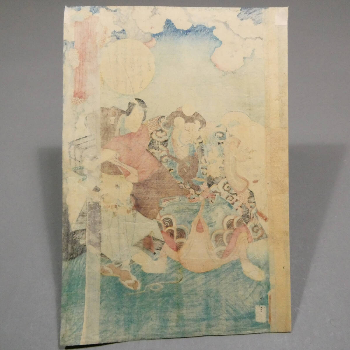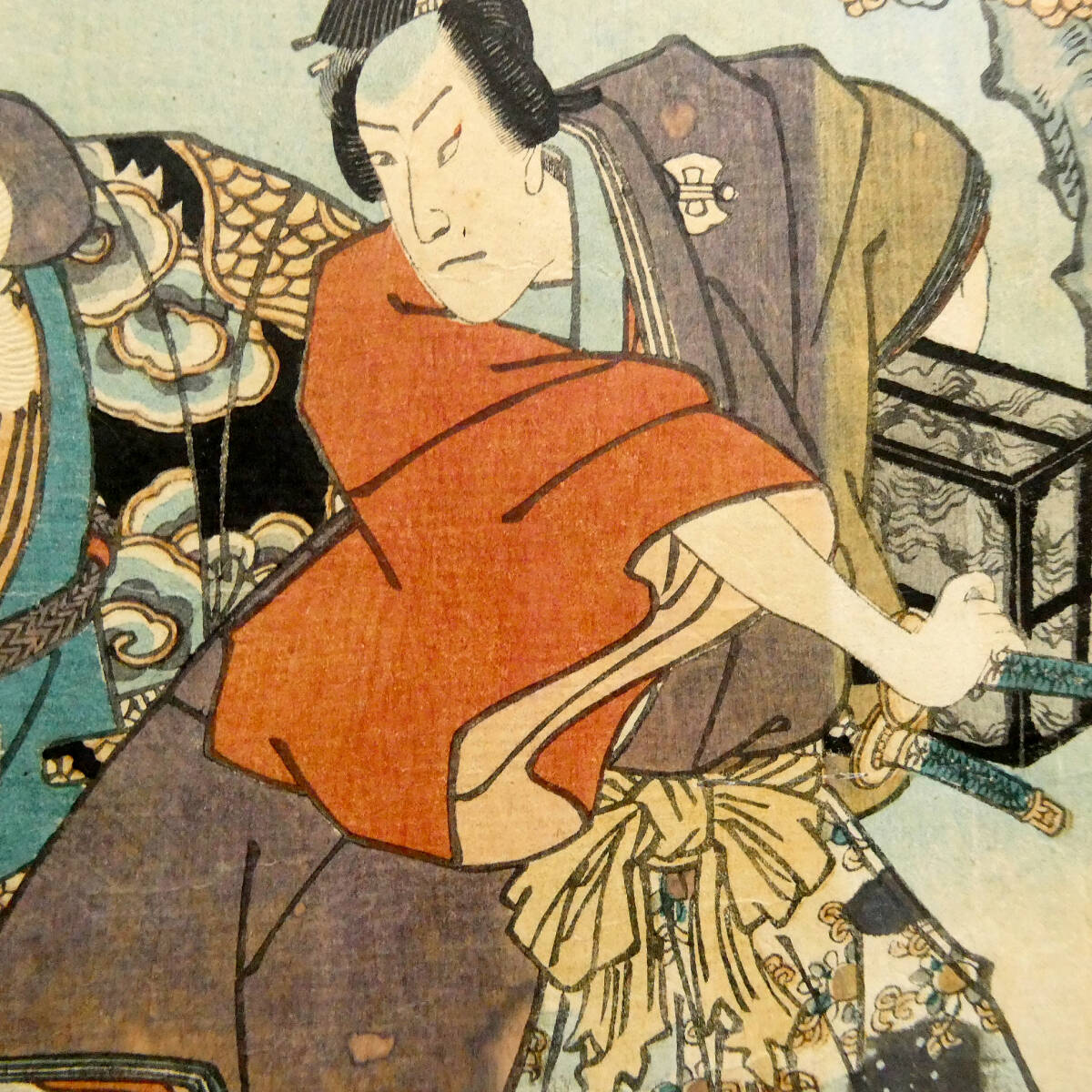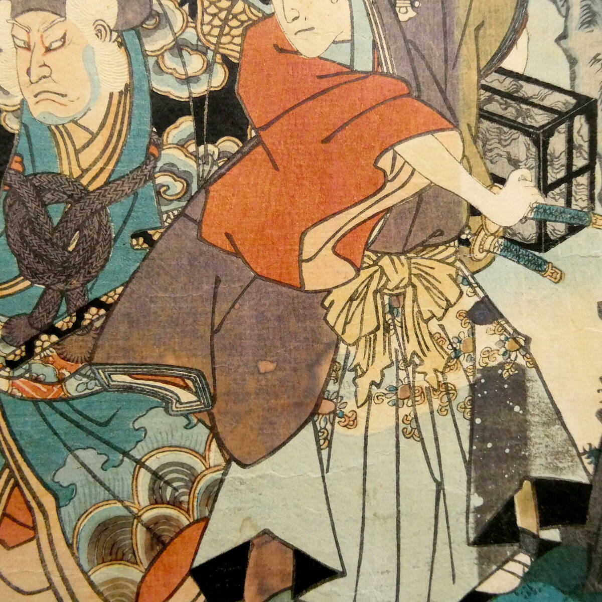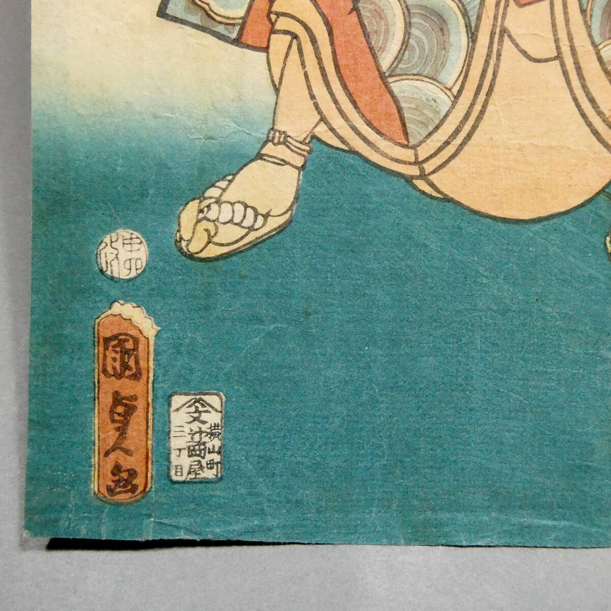 ■ 国貞二代 江戸時代 木版浮世絵 「釈迦八相記今様写絵」 釈迦如来舎衛国の摩伽迦 犬となりて伏蔵の黄金を守る ■