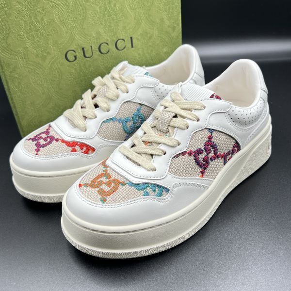 1005【新品未使用】GUCCI グッチ 670408 厚底 ジャンボGG スニーカー 34 21cm インターロッキングG 靴 箱付 シューズ レディース |