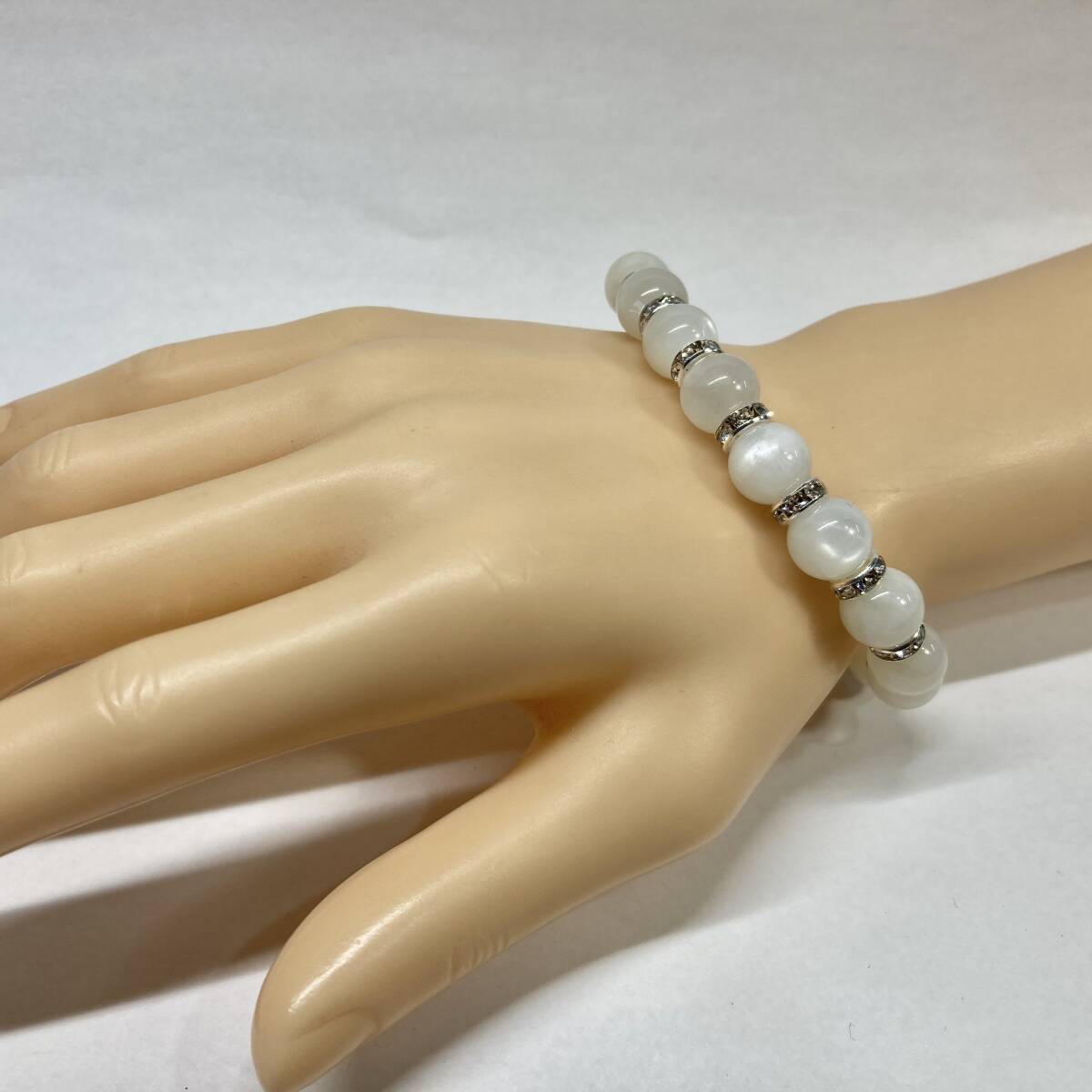 こちらは、10mm玉のムーンストーンを使用したパワーストーンブレスレットです。シンプルなデザインは、男女問わずどんなコーディネートとも合わせ易いブレスレットです。サイズは内周約18cmです。(サイズ変更の場合は取引ナビにてご連絡をお願いします。)数に限りがございますので気になる方はお早めにどうぞ。