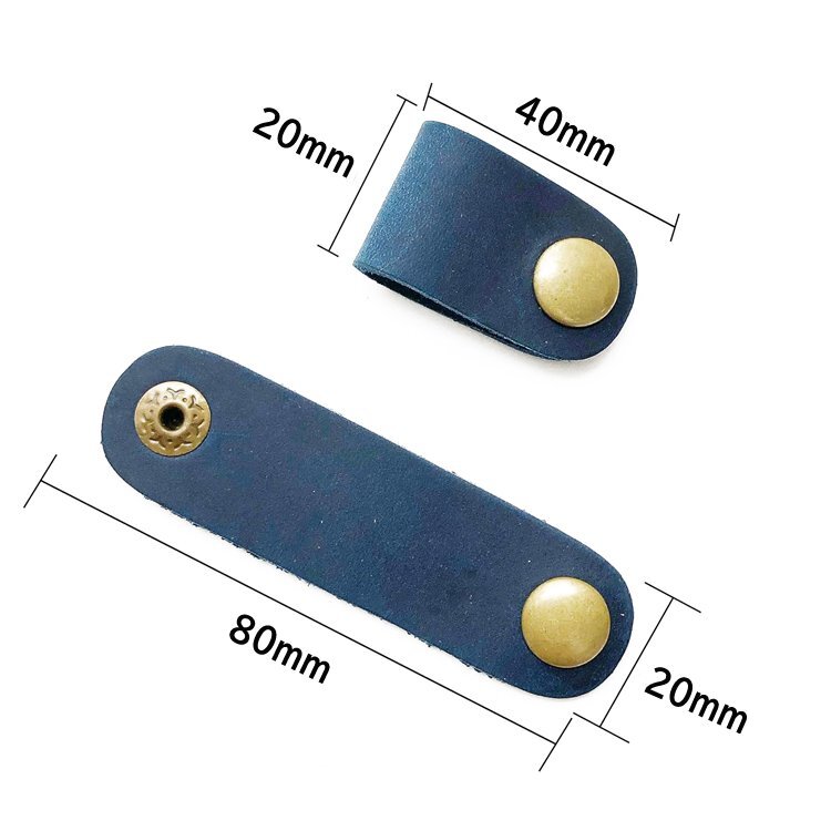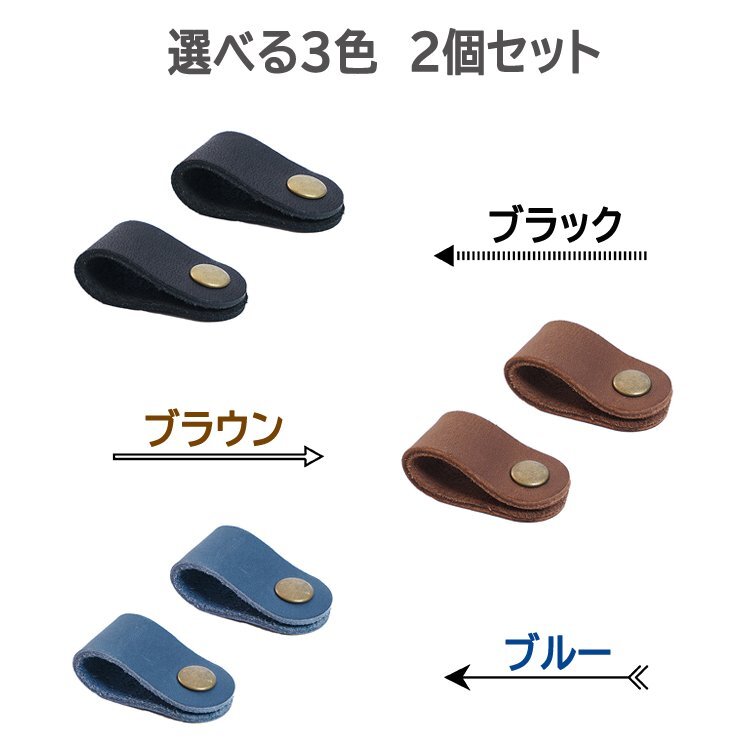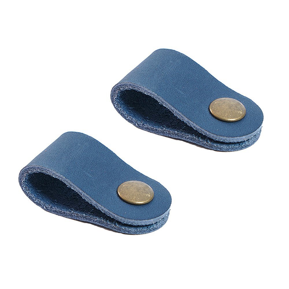 ◆本革コードホルダー 2個セット 高級 ケーブルクリップ 巻取り コード収納 配線整理 PCコード 有線イヤホン 充電ケーブル 持ち運び便利 デスクまわりの整理にも【ブルー】APYH02S
