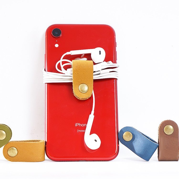 有線イヤホンや充電ケーブルや各種コードをまとめることができる本革ホルダーです。