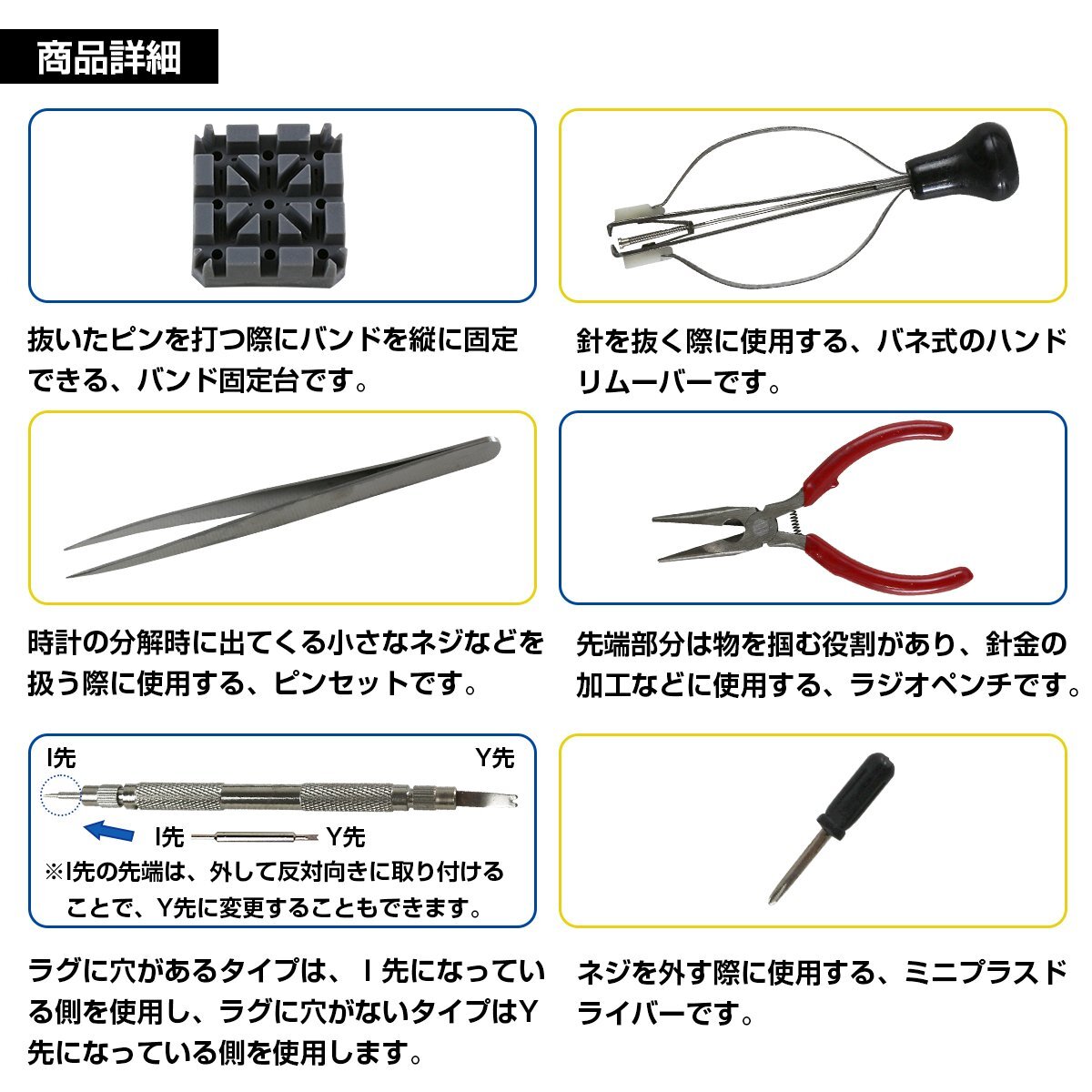 拭き布、時計固定バイス、バンド固定台、ハンドリムーバー、バンドコマ外し