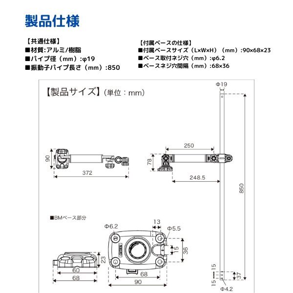 〇商品名 デッキ用フィッシュセンサーアーム BMベース 250mm〇