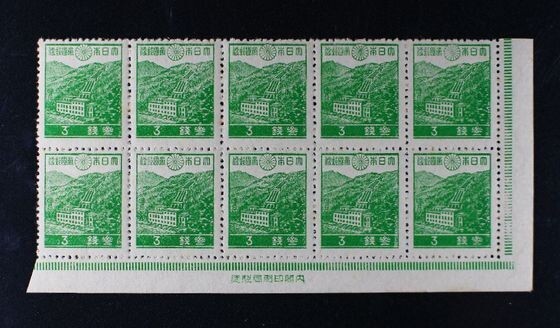 ☆出品商品名→ 内閣印刷局銘板付『第1次昭和切手/水力発電所』3銭/10B NH美品