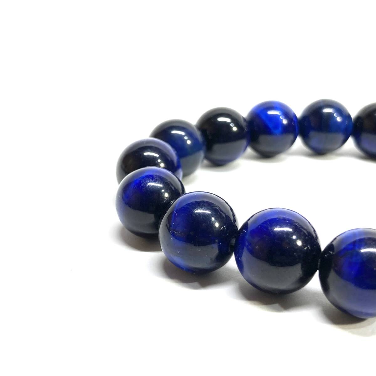 こちらは、ブルータイガーアイ の12mm玉を使用したパワーストーンブレスレットです。シンプルなデザインですのでどんなコーディネートとも合わせ易いブレスレットです。程よくインパクトがある12mm玉を使用して内周約17cmです。(サイズ変更の場合は取引ナビにてご連絡をお願いします。) 数に限りがございますので気になる方はお早めにどうぞ。