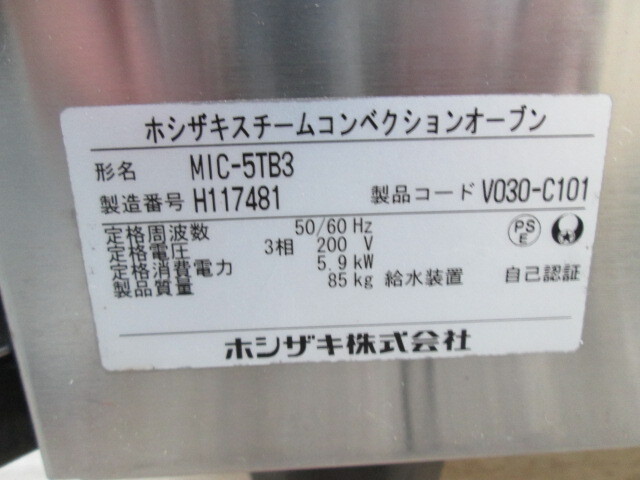 ホシザキ スチームコンベクションオーブン スチコン MIC-5TB3 三相200V パッキン新品(1120AT)7BY-14