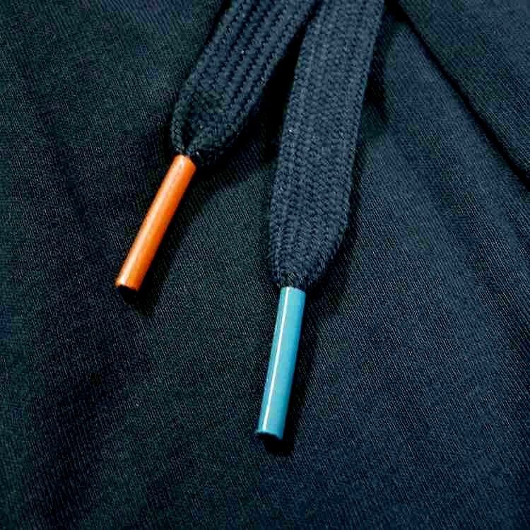 左右の先端の色を変えたスピンドルが印象的なジョガーパンツ。