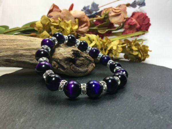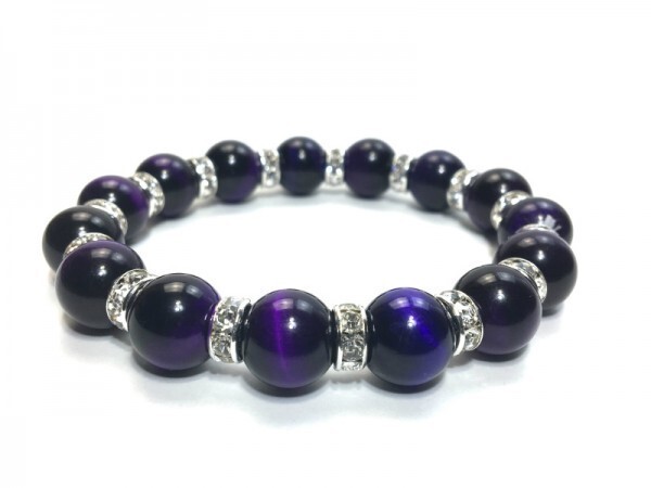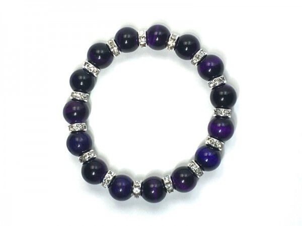 こちらは、12mm玉のパープルタイガーアイを使用した天然石ブレスレットです。石との間にはロンデルを挟み高級感を演出しています。シンプルなデザインですのでどんなコーディネートとも合わせ易いブレスレットです。石大きさは12mm玉です。内径約18cmです。(サイズ変更の場合は取引ナビにてご連絡をお願いします。) 数に限りがございますので気になる方はお早めにどうぞ。
