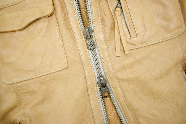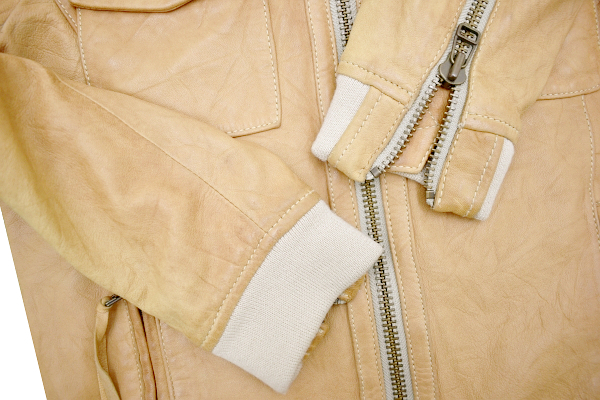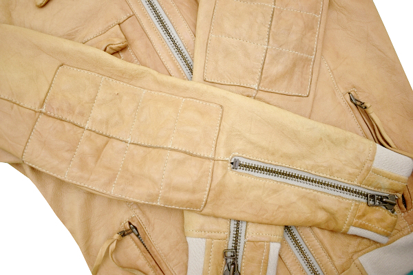ベージュカラー 外ポケット4つ 内ポケット1つ ダブルジップ レザージャケット