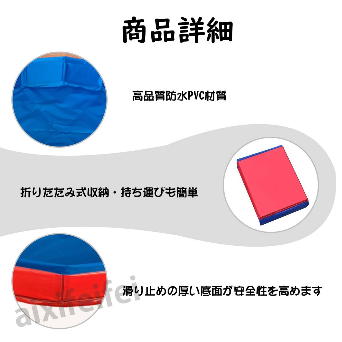 【商品規格】:このプールは、展開時のサイズが約50×10cm、折りたたみ時のサイズが約26×12cmで、重量は約27gです。色は赤と青のツートンカラーです。