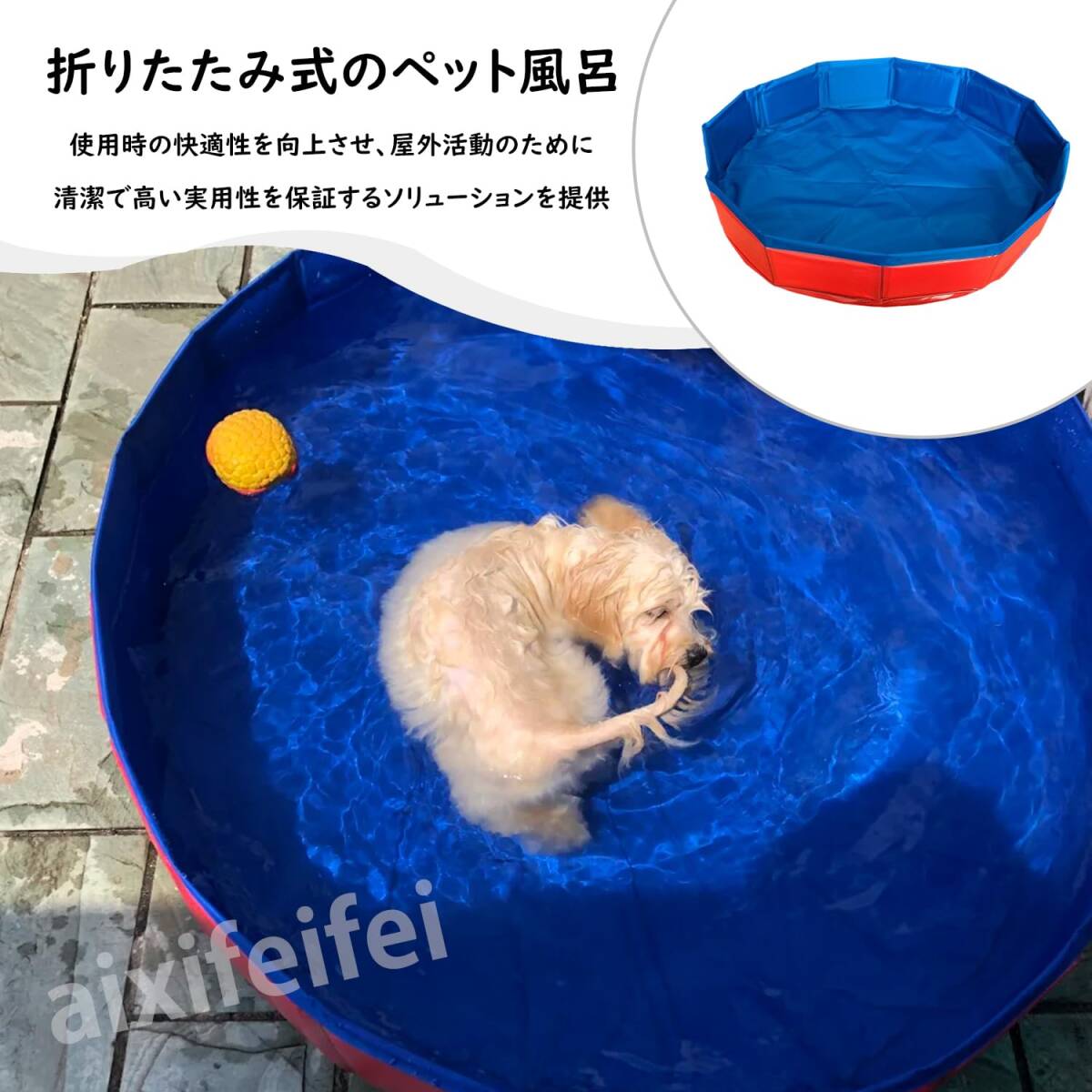 【コンパクト収納可能】:折りたたみ式で軽量設計の犬用プールなので、持ち運びも収納もラクラク。場所を取らず、旅行時にも便利です。