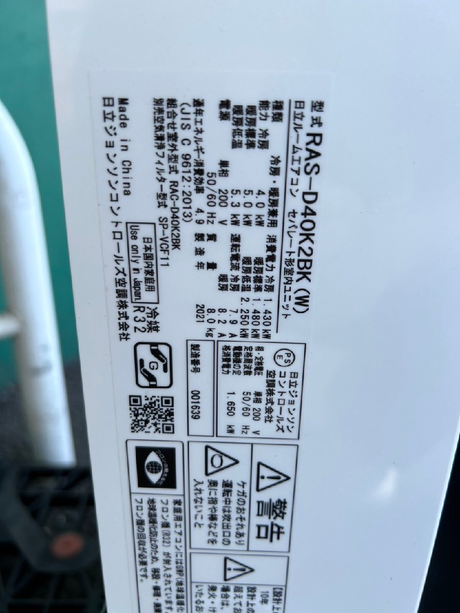 日立 RAS-D40K2BK エアコン 室内機のみ 未使用品の出品となります。状態は未使用品ですが、長期倉庫に保管された為、梱包の痛みあります。未使用品として入荷してきてはおりますが、未確認ですので本体に凹みや傷が有るかもしれません。動作につきましては室外機が有りませんので動作未確認となります。動くかどうかの保証は致しかねますので、動作及び外装などノークレーム・ノーリターンでお願いします。超特価の19800円スタートでお願いいたします。落札価格に別途消費税がかかります。エアコンの室内機のみ、室外機のみの商品はほかの販路でも販売させていただいておりますので、ご希望の場合はなるべく早くご入札をお願いします。入札がない場合は取り消しをすることがございますのでご注意ください。ほかにも多数出品しておりますのでよろしくお願いいたします。