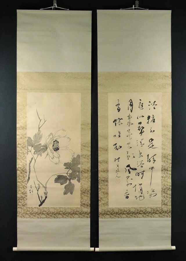 11947■【真作】松林桂月 双幅 書画 絹本 共箱 肉筆 山口の人 野口幽谷門下 南画家 掛軸