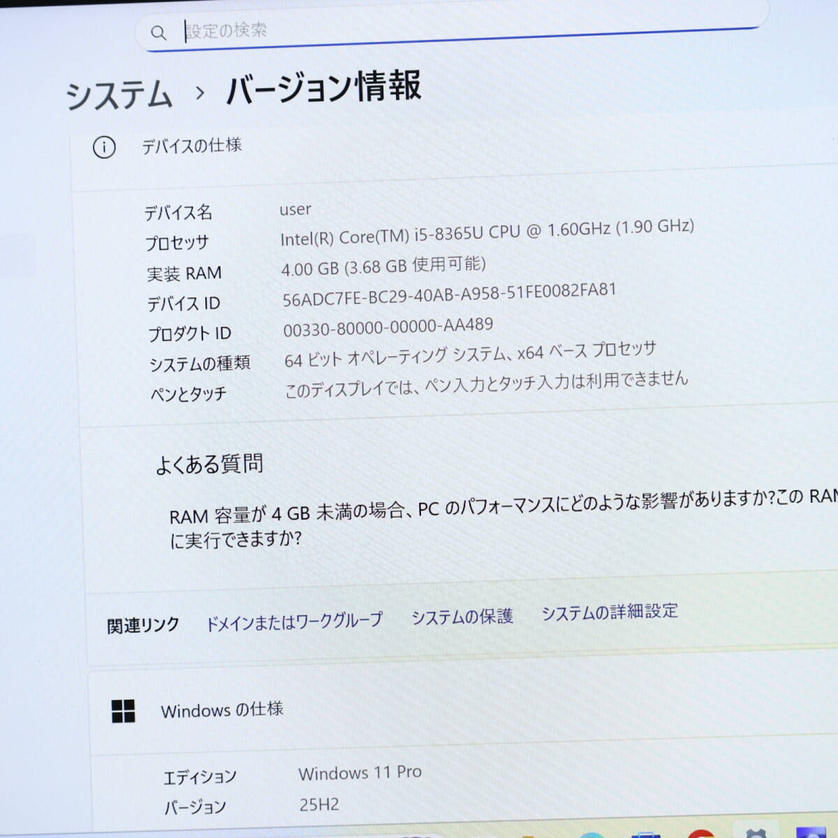 8世代クアッドコア(4コア)8スレッド 高性能CPU♪