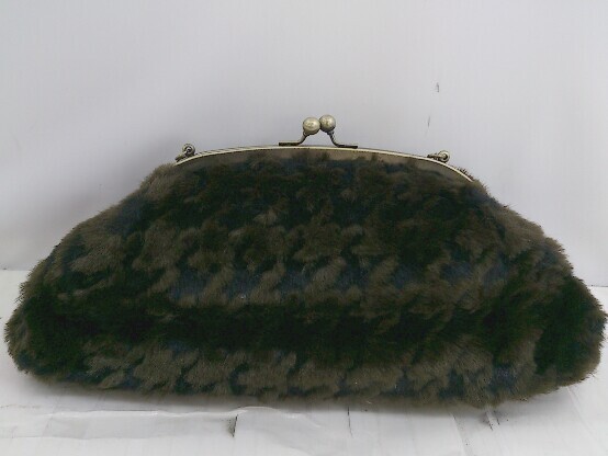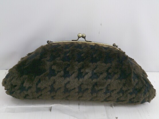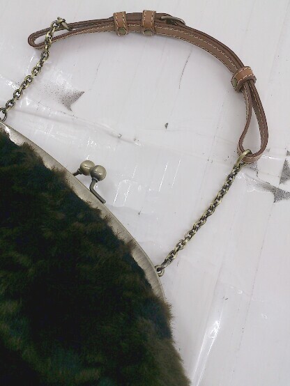 ◇ KUMIKYOKU 組曲 フェイクファー がま口 ハンドバッグ ダークブラウン ブラック レディース P
