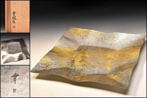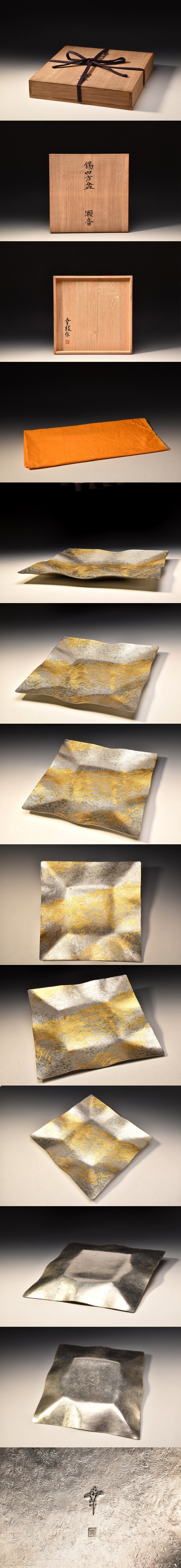 U08612 人間国宝 大角幸枝 鍛金 錫 四方盆 瀬音/3F