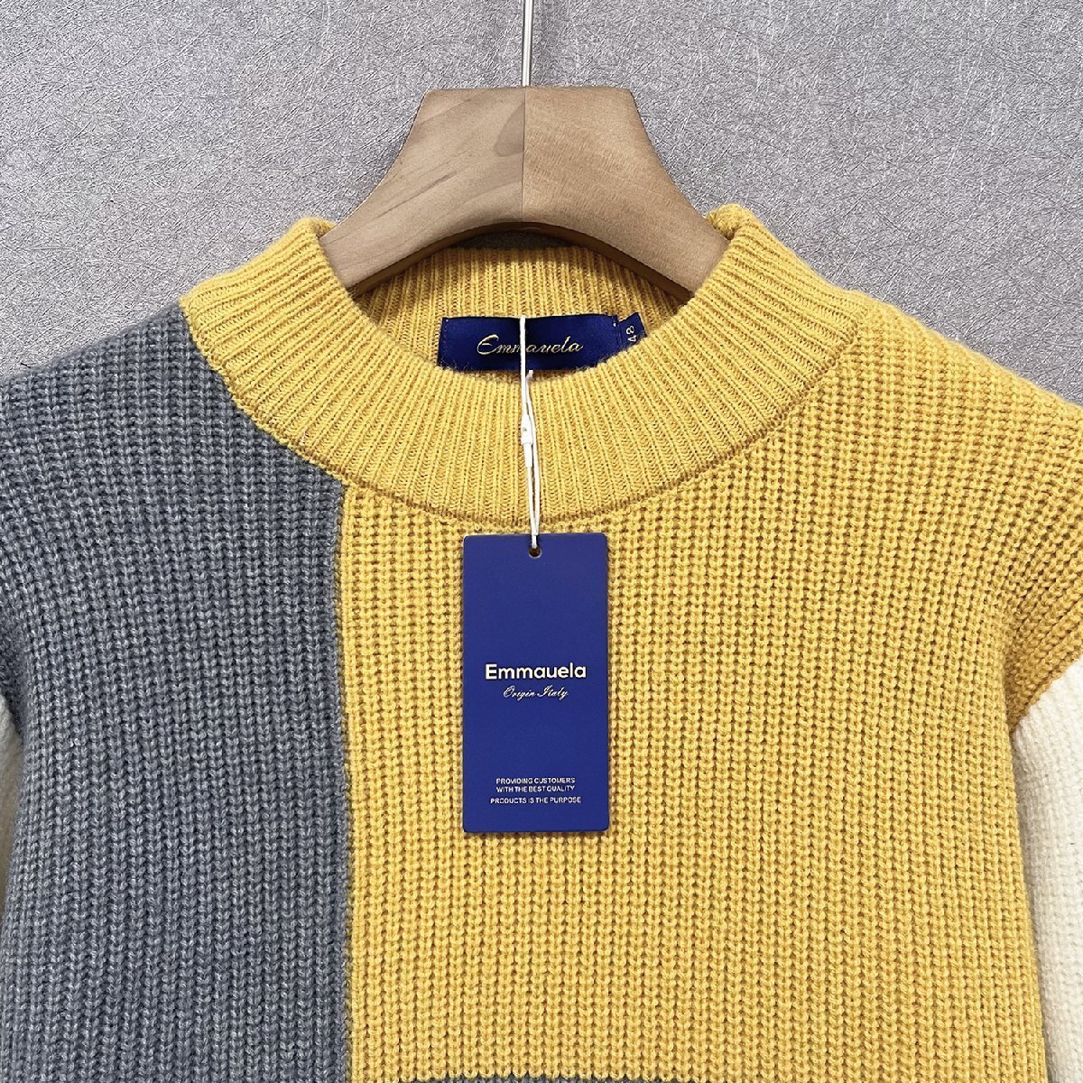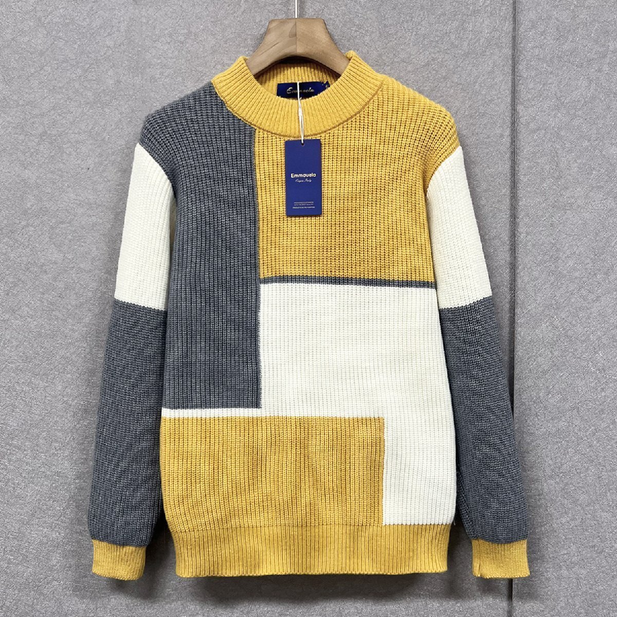 人気・セーター 定価5万◆Emmauela・イタリア・ミラノ発◆ウール混 ソフト 保温 切替 個性 シンプル ニット トップス 秋冬 日常 L/48サイズ